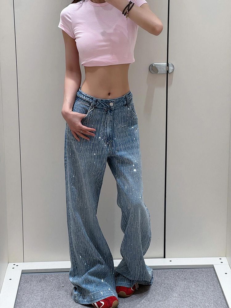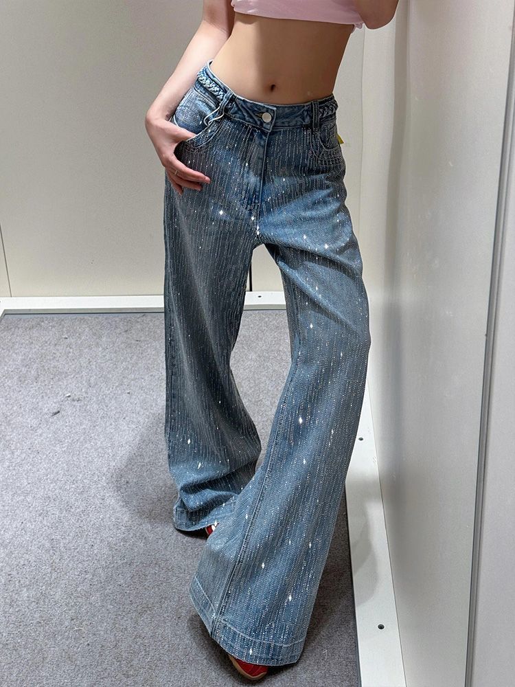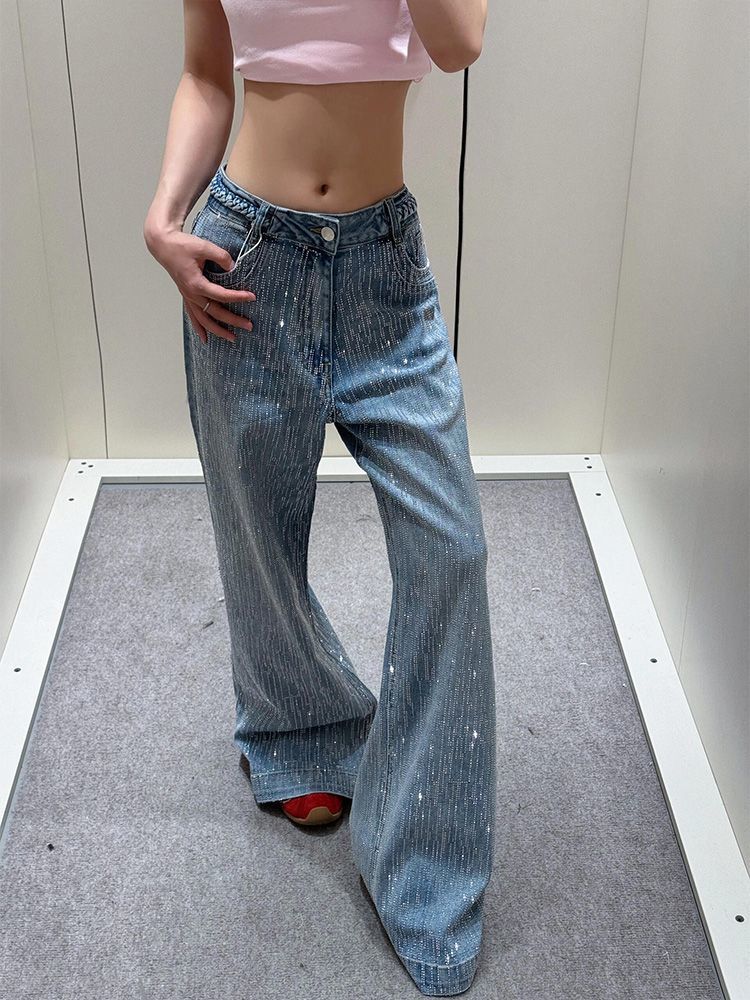 미국식 플러스 사이즈 스파이스 걸의 Gimono 스티칭 반짝이는 청바지 여성용 Bf 게으른 바람 느슨한 딥 팬츠스토어 가기