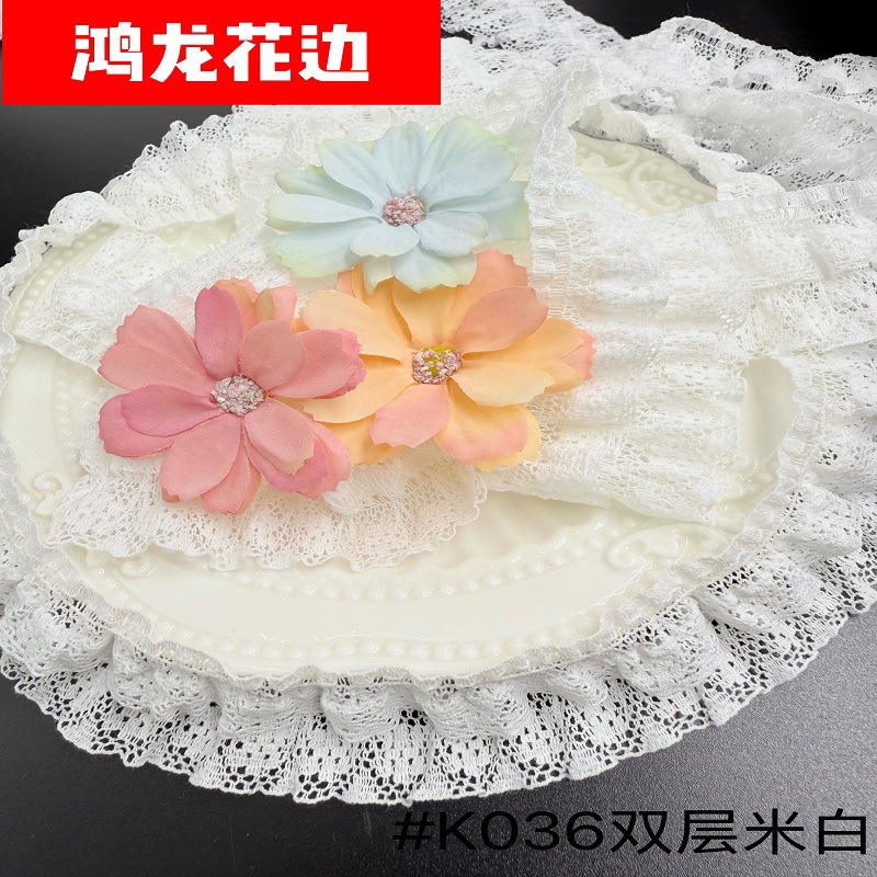 스웨터 스커트와 소매용 3.5CM 브로케이드 면 스트레치 더블 레이어 레이스 액세서리 공장 직접 판매스토어 가기