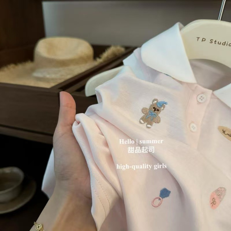 슈퍼 활력 아기 소녀 귀여운 한국 스타일 만화 자수 폴로 칼라 조끼 원피스 2025 새 여름