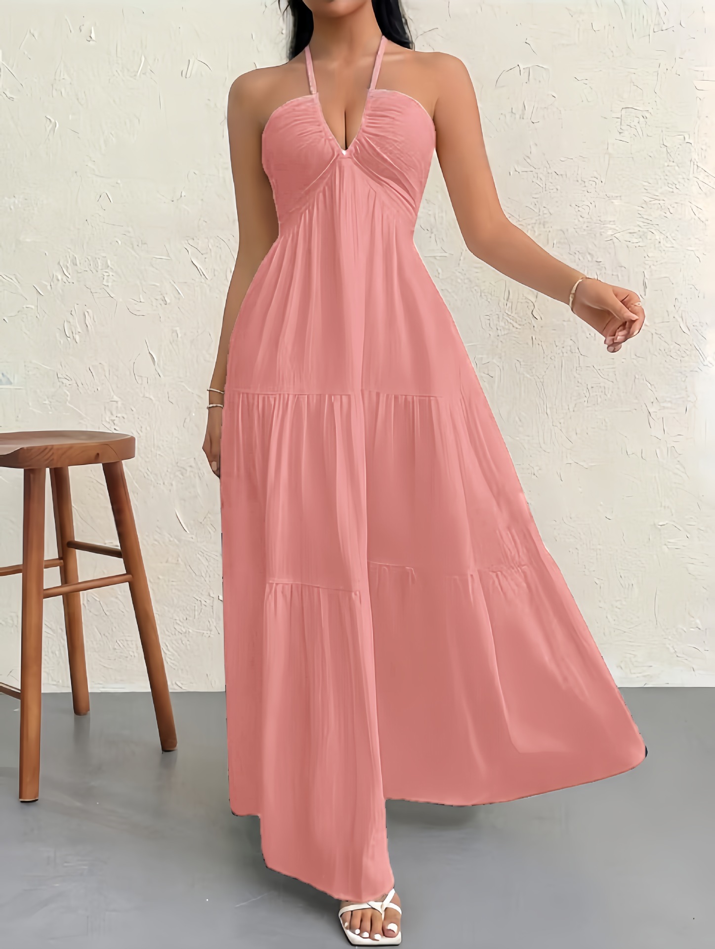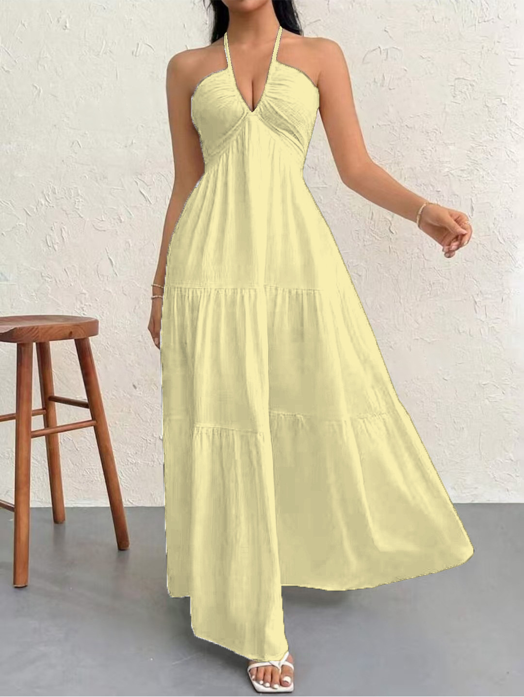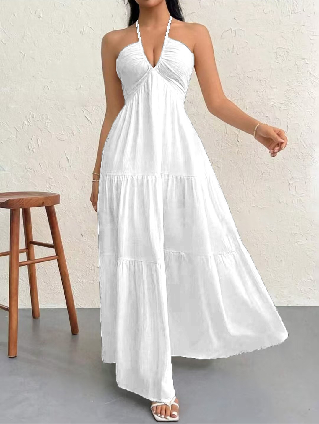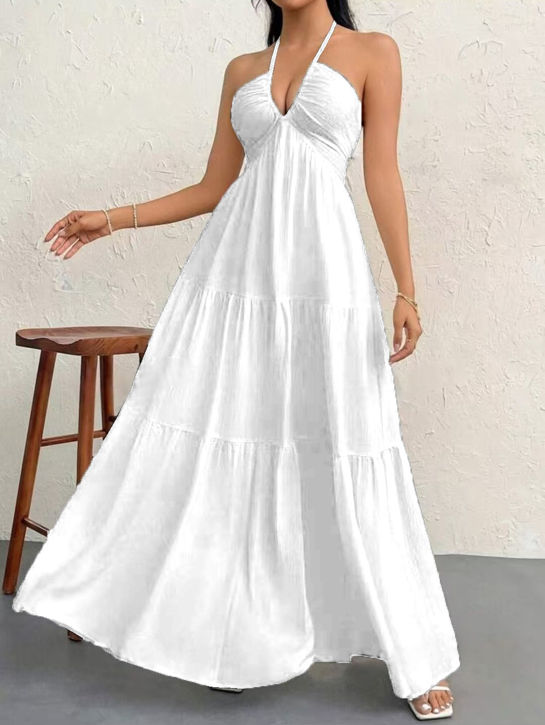2025 여름 국경 간 여성 인기 딥 V 숄더 보헤미안 스타일 벨트 웨딩 휴일 파티 드레스