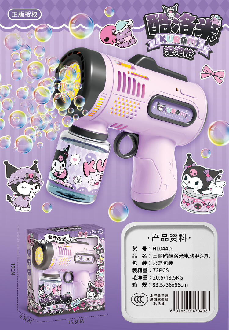 마이 핀 문구 진짜 산리오 쿨로 미 전기 거품 기계 어린이 야외 놀이 멜로디 버블 건