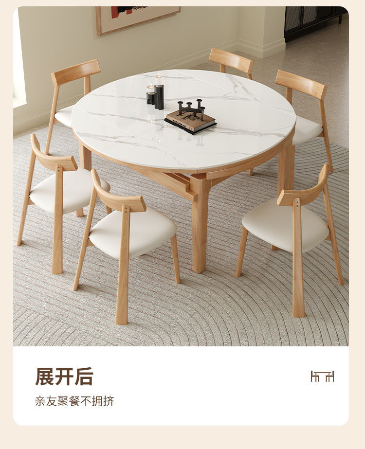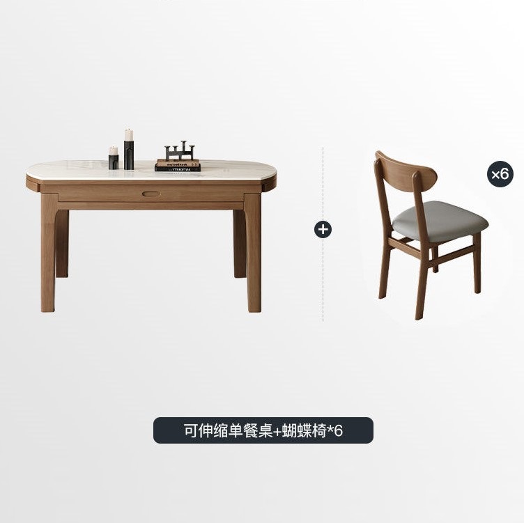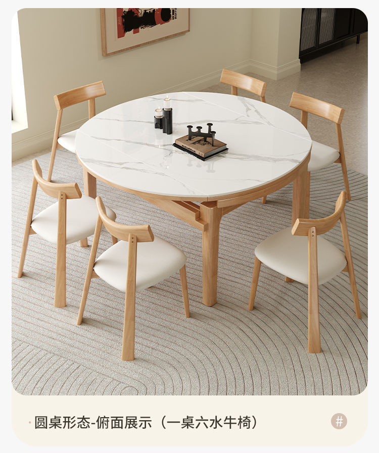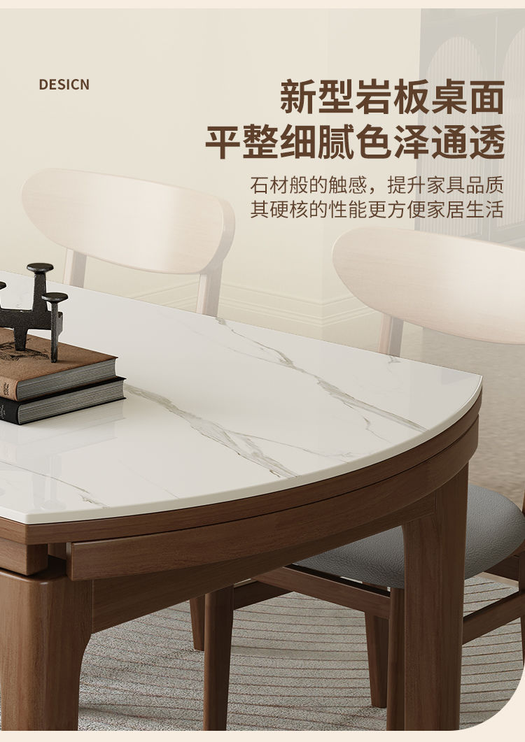 스톤 플레이트 원목 식탁과 의자 조합 현대적인 단순 개폐식 접이식 사각형 및 원형 이중 목적 가정용 소형 거실 식탁