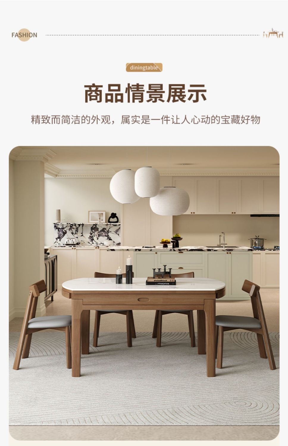 스톤 플레이트 원목 식탁과 의자 조합 현대적인 단순 개폐식 접이식 사각형 및 원형 이중 목적 가정용 소형 거실 식탁스토어 가기