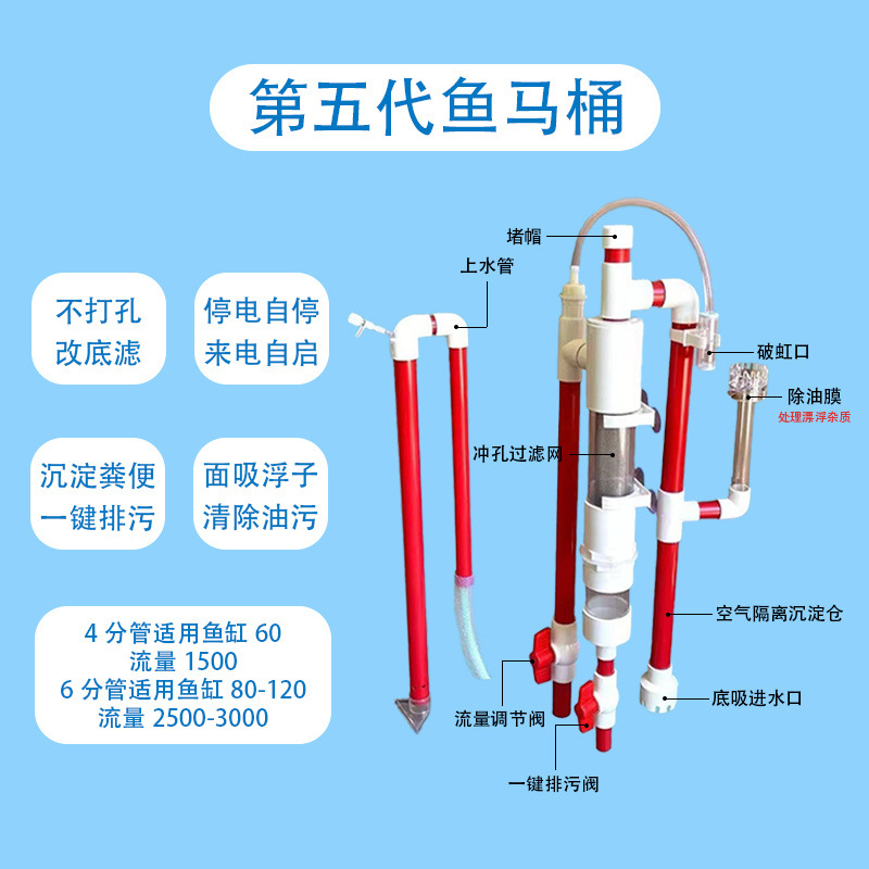 펀치 없는 사이펀 바닥 필터, 물 순환 어항, 어항 및 배변용 완전 자동 공기 차단 필터, 새로운 스타일