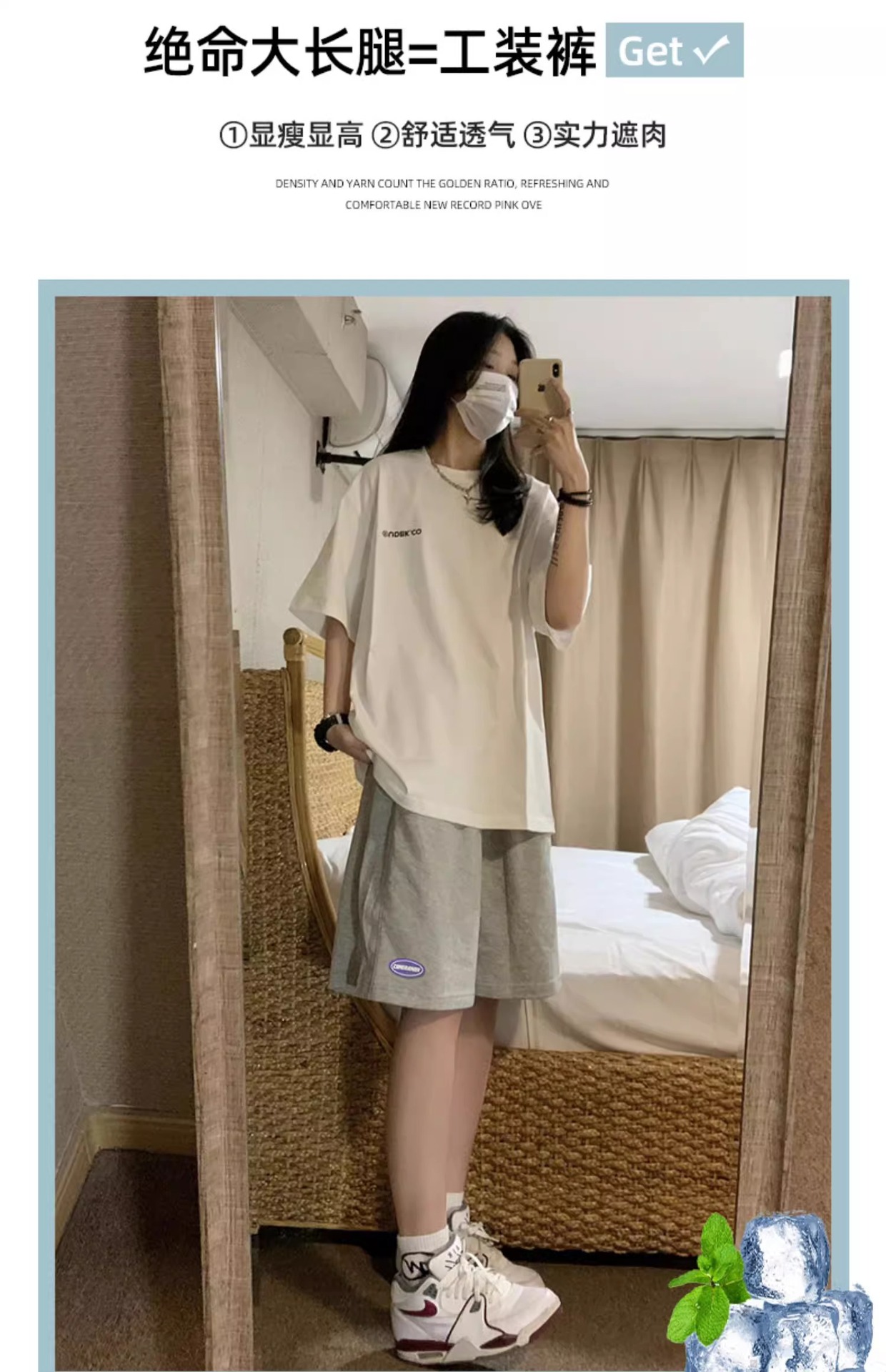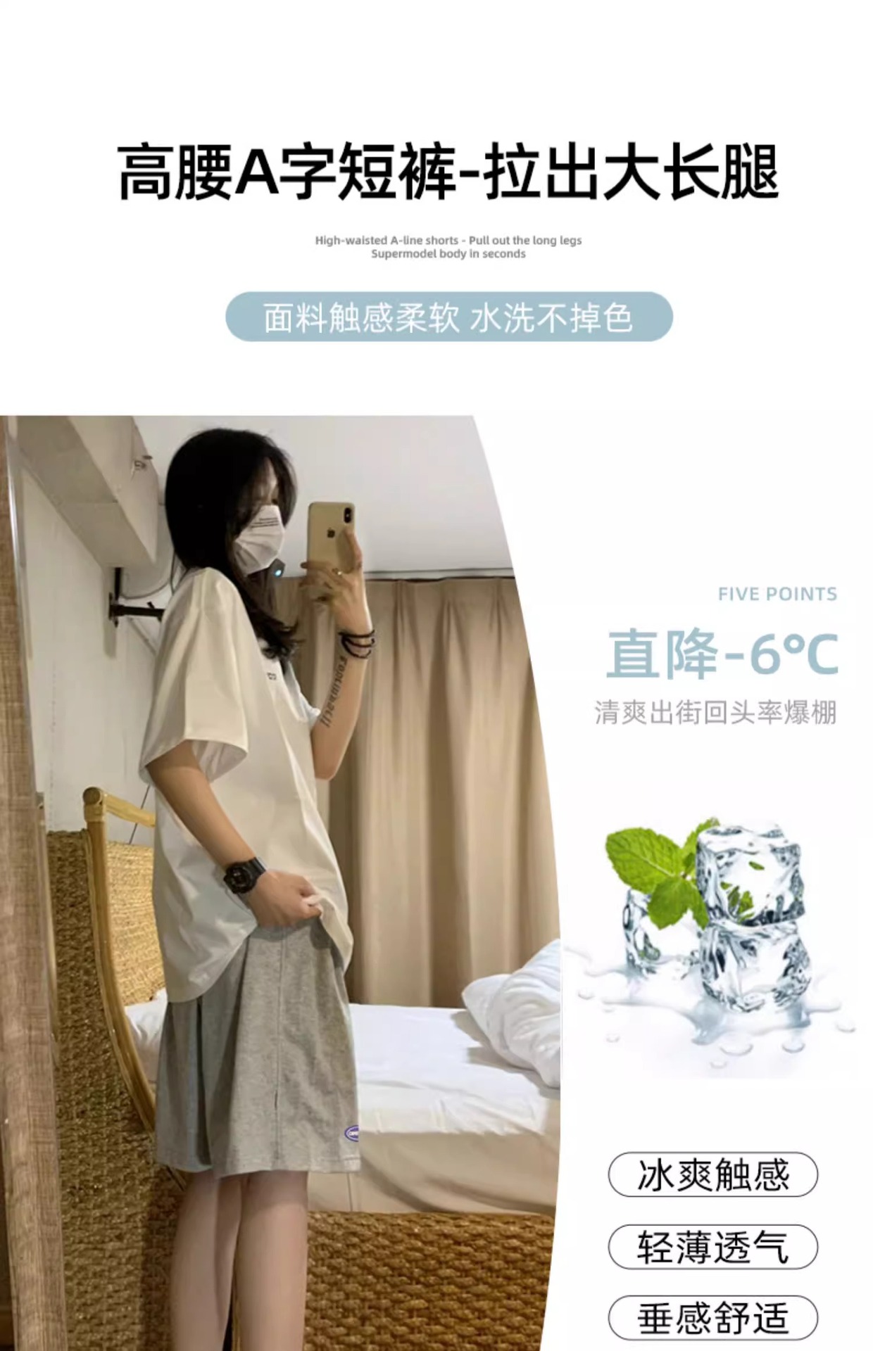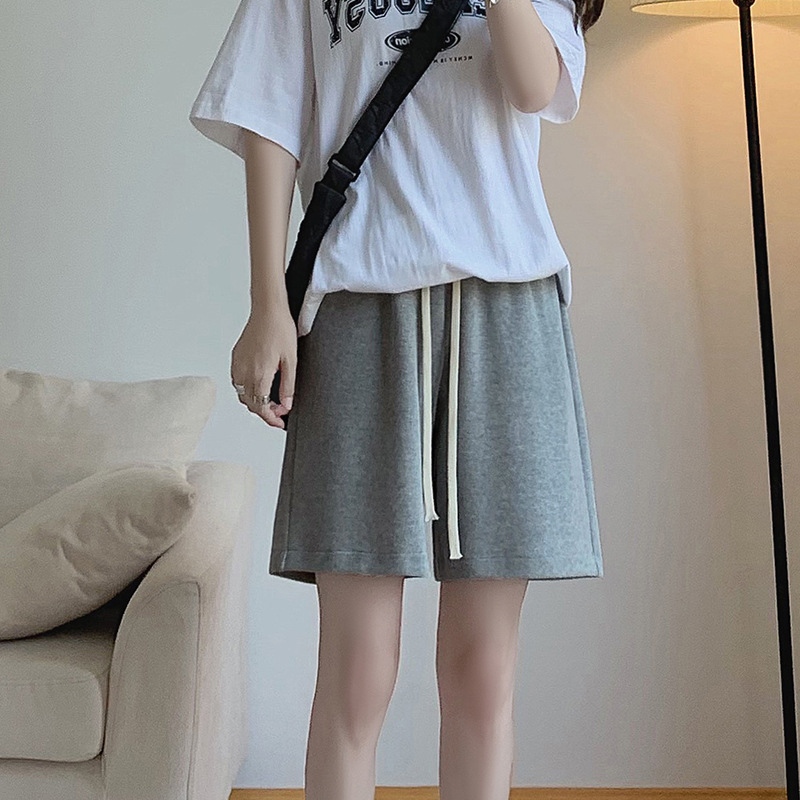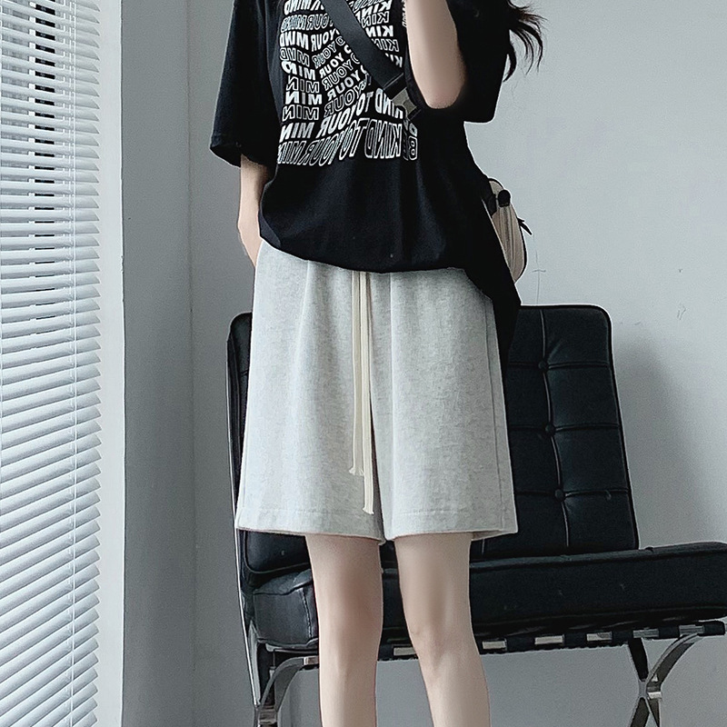 회색 스포츠 반바지 여성의 2025 새로운 여름 얇은 높은 허리 학생 슬리밍 캐주얼 중간 길이 바지 넓은 다리 바지스토어 가기