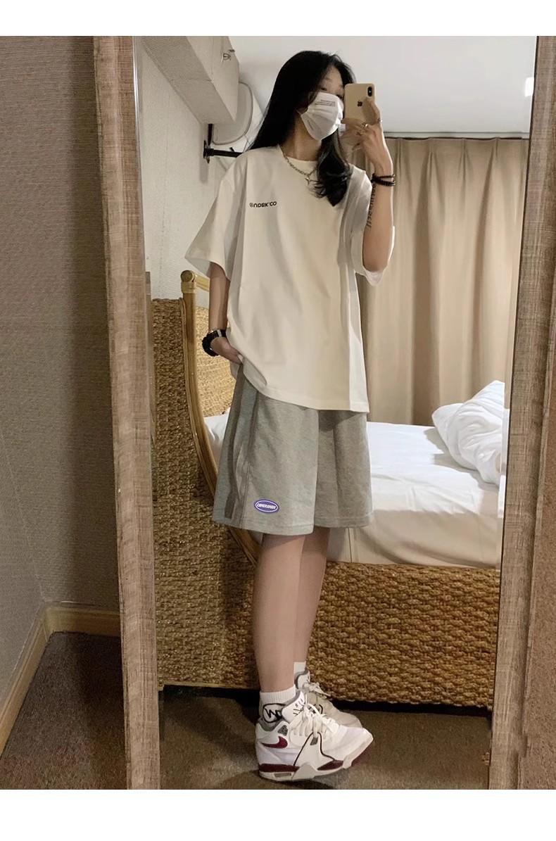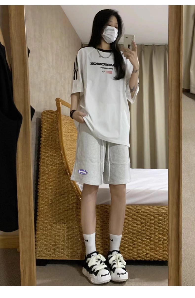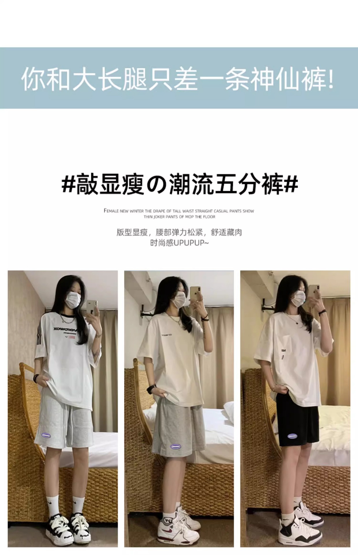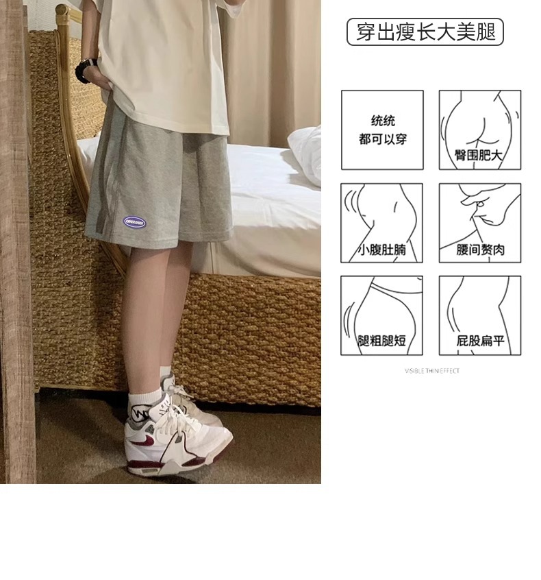 회색 스포츠 반바지 여성의 2025 새로운 여름 얇은 높은 허리 학생 슬리밍 캐주얼 중간 길이 바지 넓은 다리 바지스토어 가기
