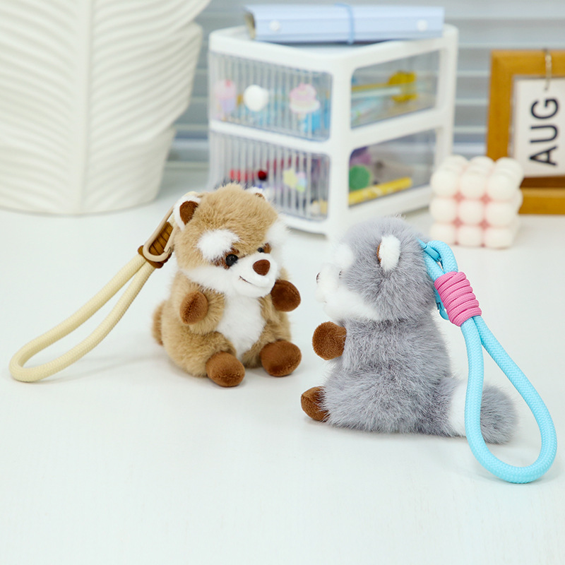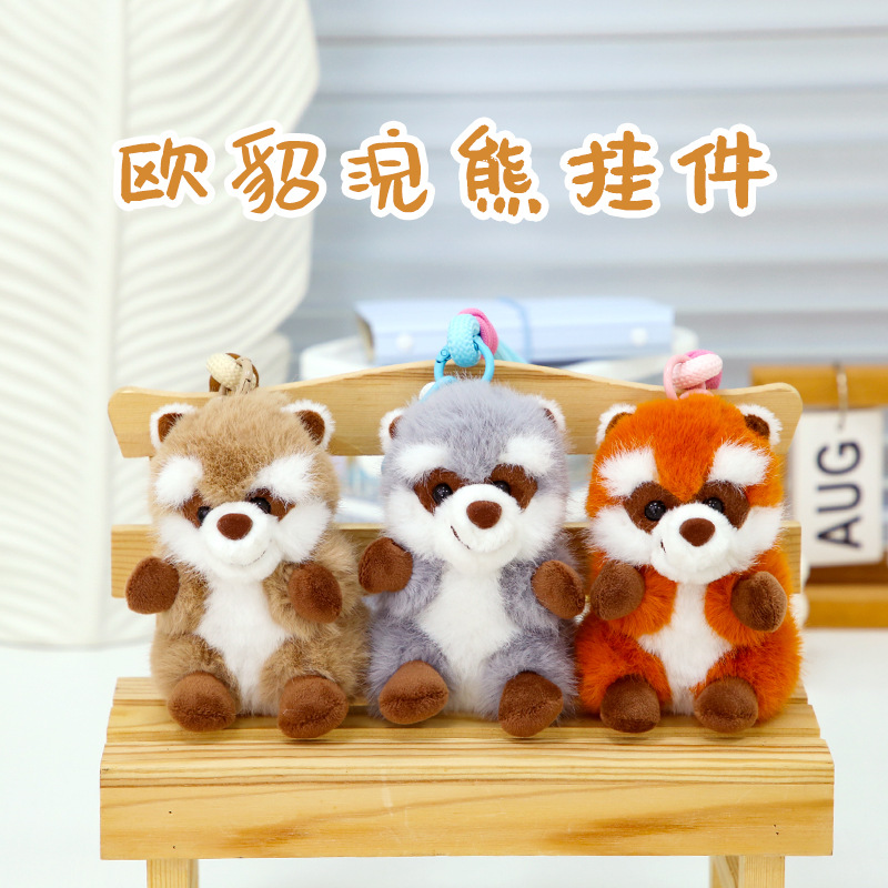 인터넷 연예인 귀여운 작은 너구리 펜던트 플러시 장난감 시뮬레이션 동물 인형 인형 가방 펜던트 키 체인 도매