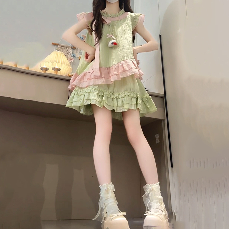 여름 신상 가죽 스플리싱 미니 스커트, 레트로 안전바지 내장, 로우 웨이스트 슬리밍 체크 무늬 플리츠 스커트 여성용