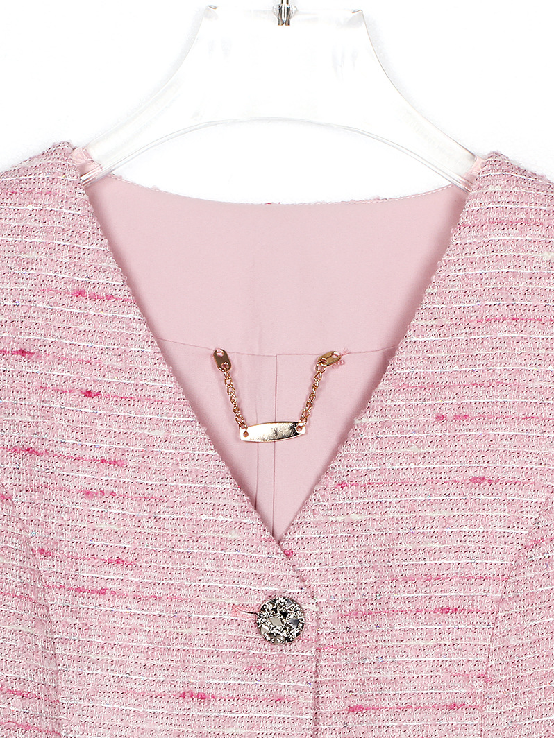 2025 새로운 여성 원피스 꽃 원사 딸기 파우더 V 넥 샤넬 조끼 최고 주름 짧은 치마 세트스토어 가기
