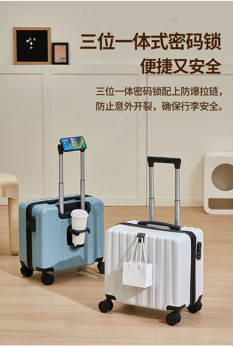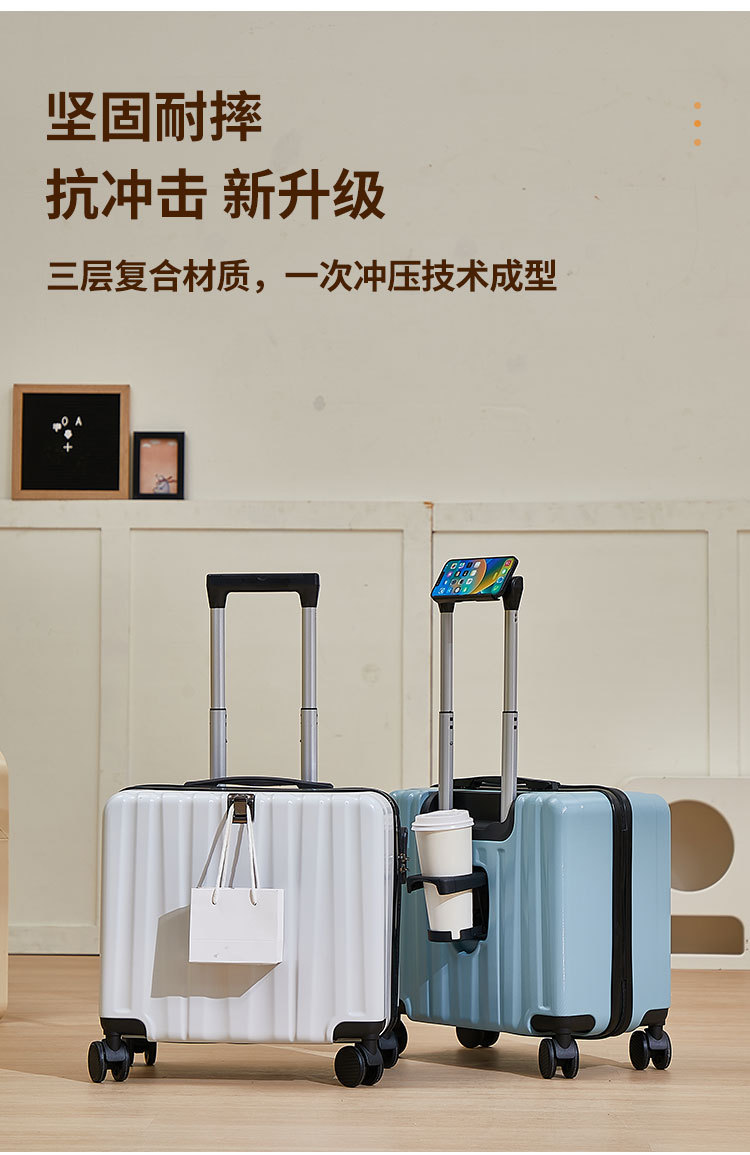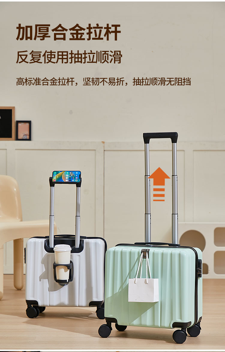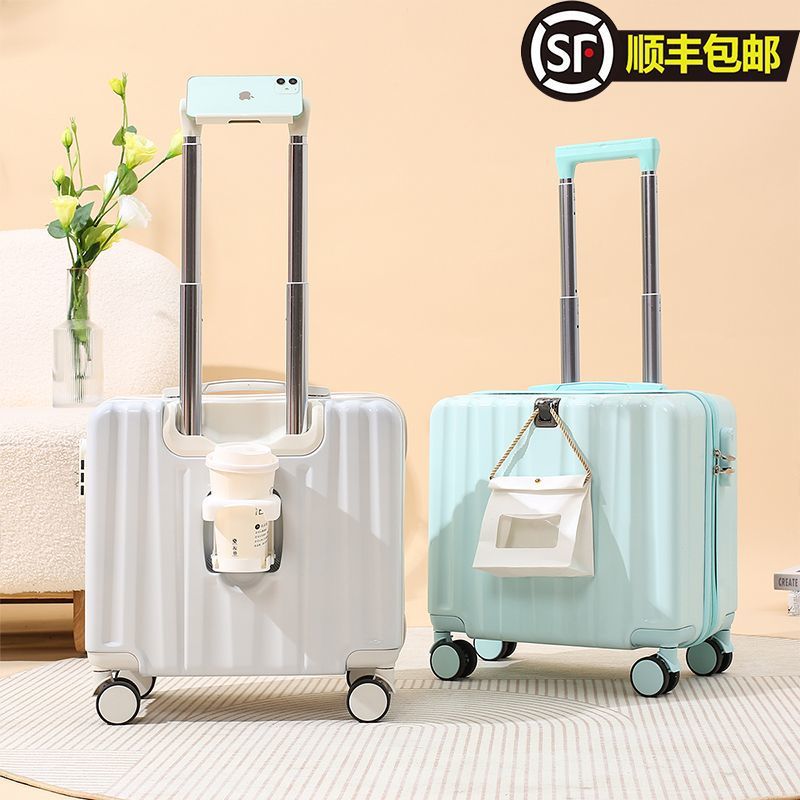 소형 수하물 케이스 여성의 18 인치 소형 경 항공기 탑승 울트라 라이트 코드 트롤리 케이스 컵 홀더 여행 케이스스토어 가기