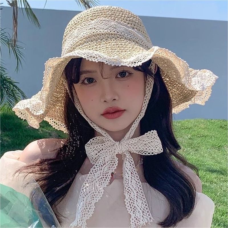 • 레이스 밀짚모자[오프화이트]