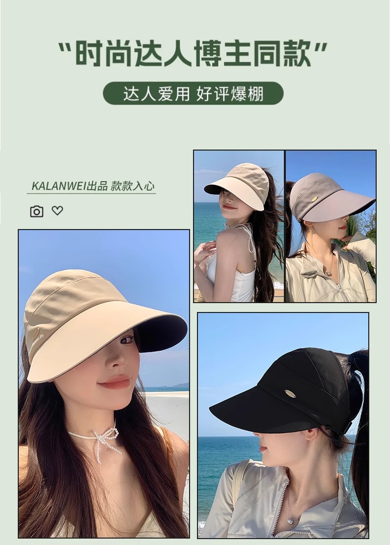 작은 얼굴을 가진 여성을 위한 빈 탑 자외선 차단 모자, 여름 큰 챙, 야외 자외선 차단 태양 모자, 뾰족한 모자, 태양 모자