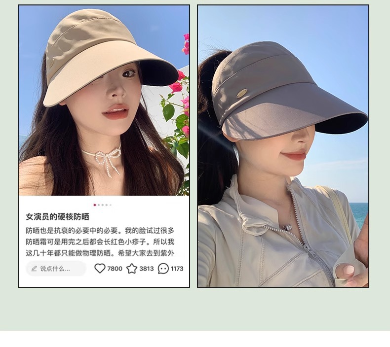 작은 얼굴을 가진 여성을 위한 빈 탑 자외선 차단 모자, 여름 큰 챙, 야외 자외선 차단 태양 모자, 뾰족한 모자, 태양 모자스토어 가기
