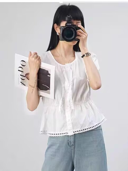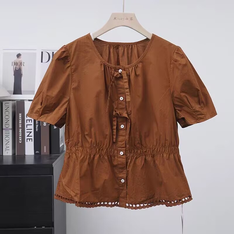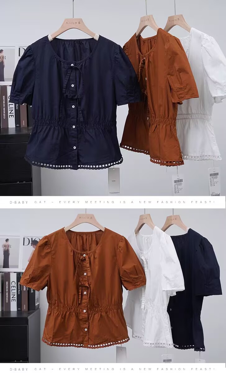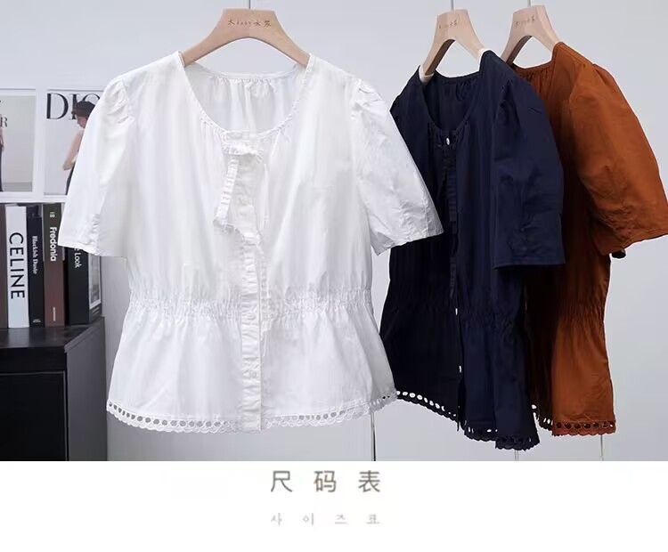 정품 한국 스타일 타이트 허리 레이스 업 싱글 브레스트 셔츠 여성 여름 새로운 한국 스타일 슬리밍 스위트 셔츠 25 인형 셔츠 트렌디스토어 가기