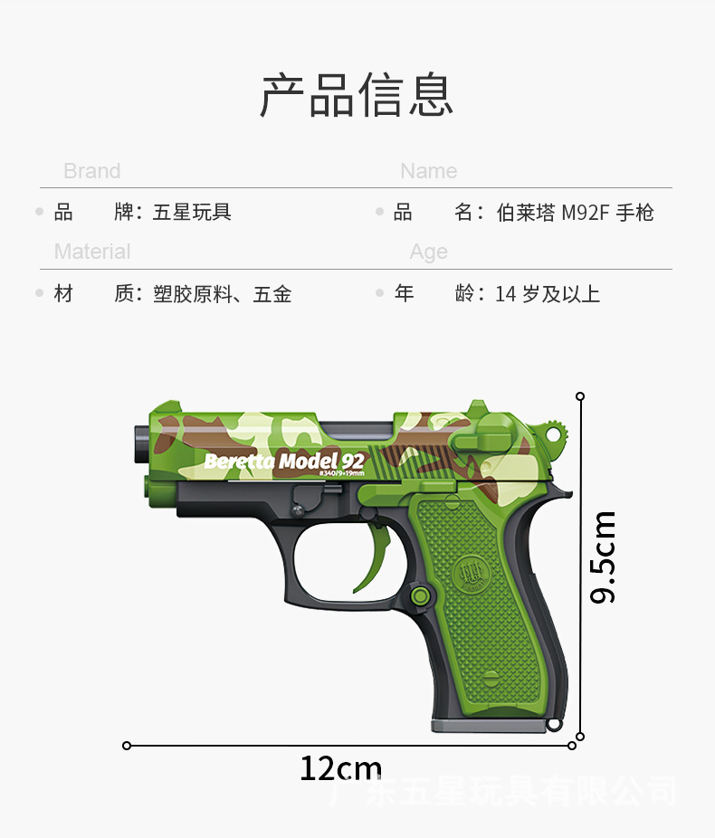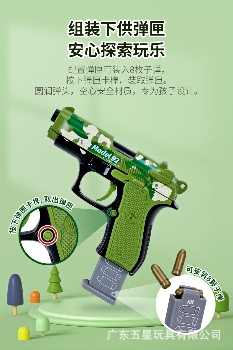 5성 장난감 베레타 반자동 소프트 탄환 빈 탄창 반자동 발사 가능한 어린이 재미있는 장난감 권총스토어 가기