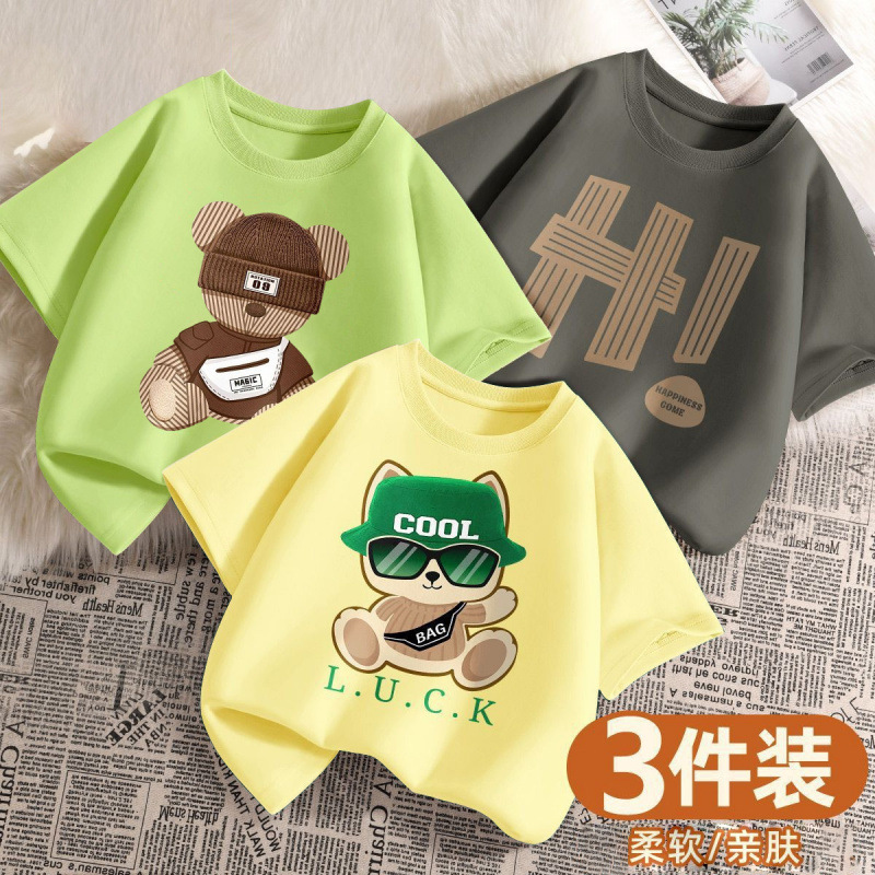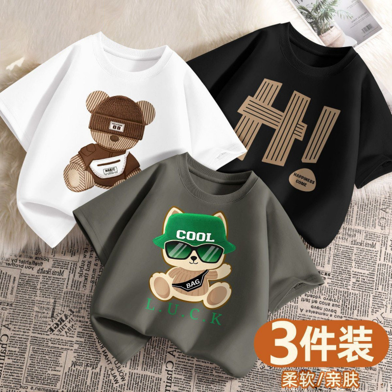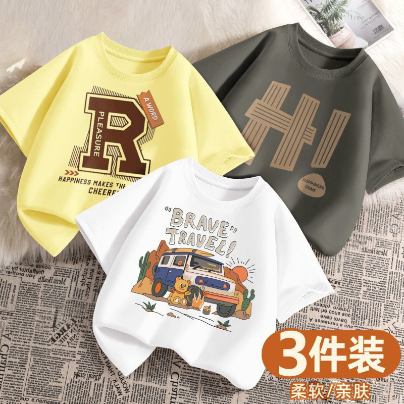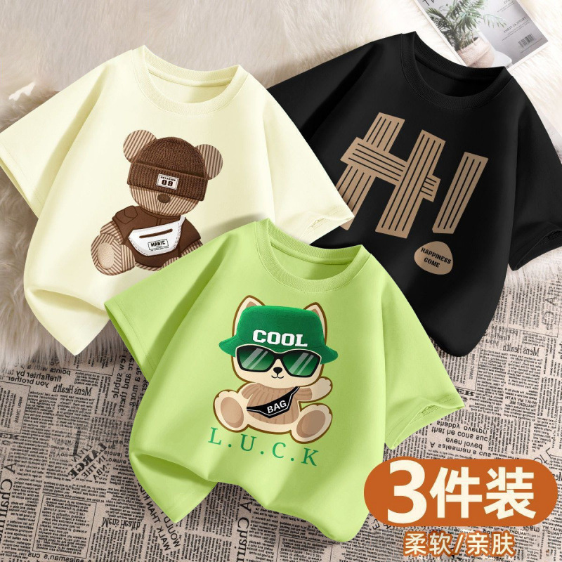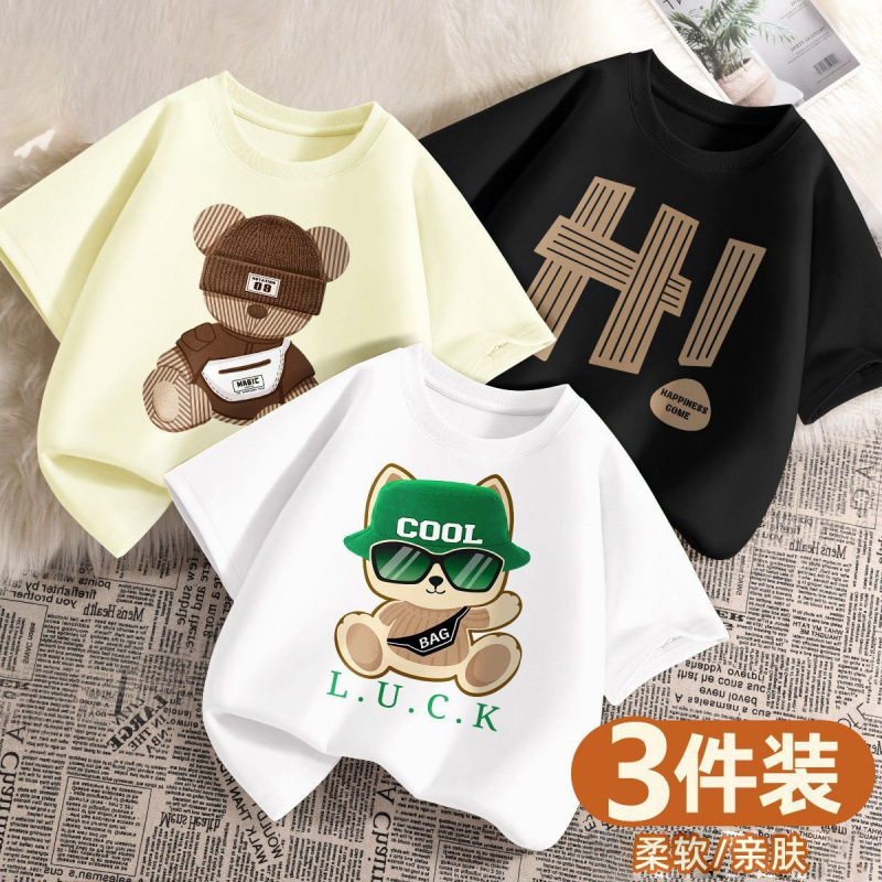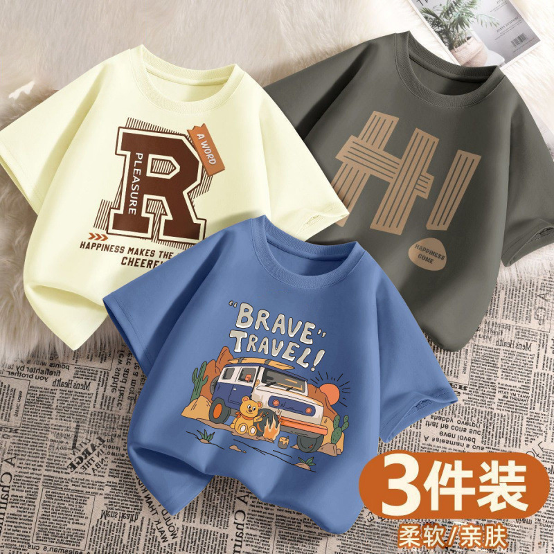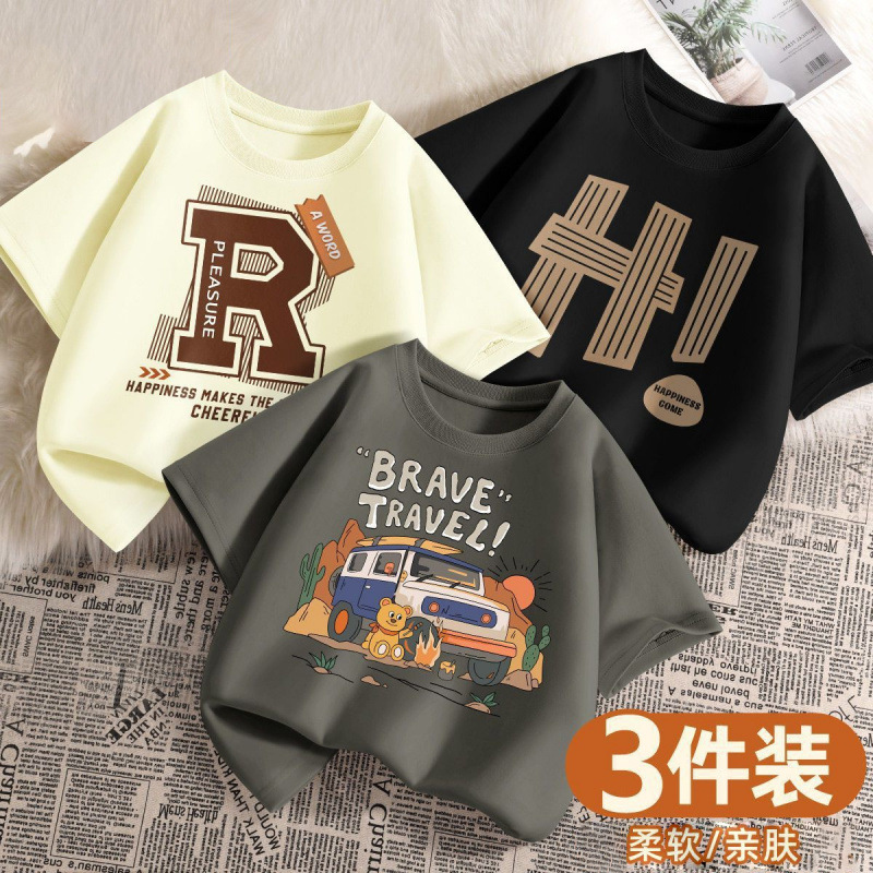 2025 새로운 어린이 반팔 티셔츠 소년 여름 기본 셔츠 중대형 어린이 캐주얼 만화 여름 옷 유행스토어 가기
