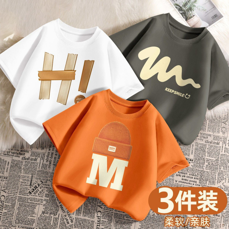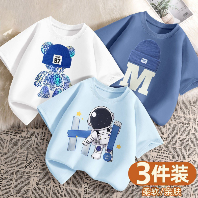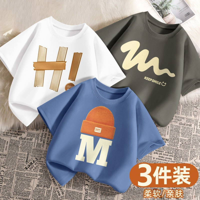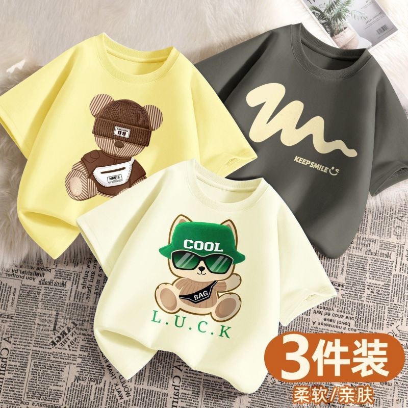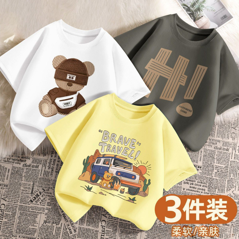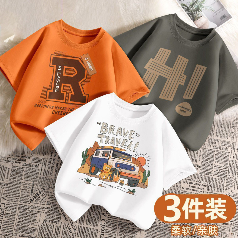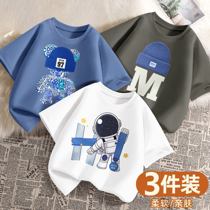2025 새로운 어린이 반팔 티셔츠 소년 여름 기본 셔츠 중대형 어린이 캐주얼 만화 여름 옷 유행스토어 가기