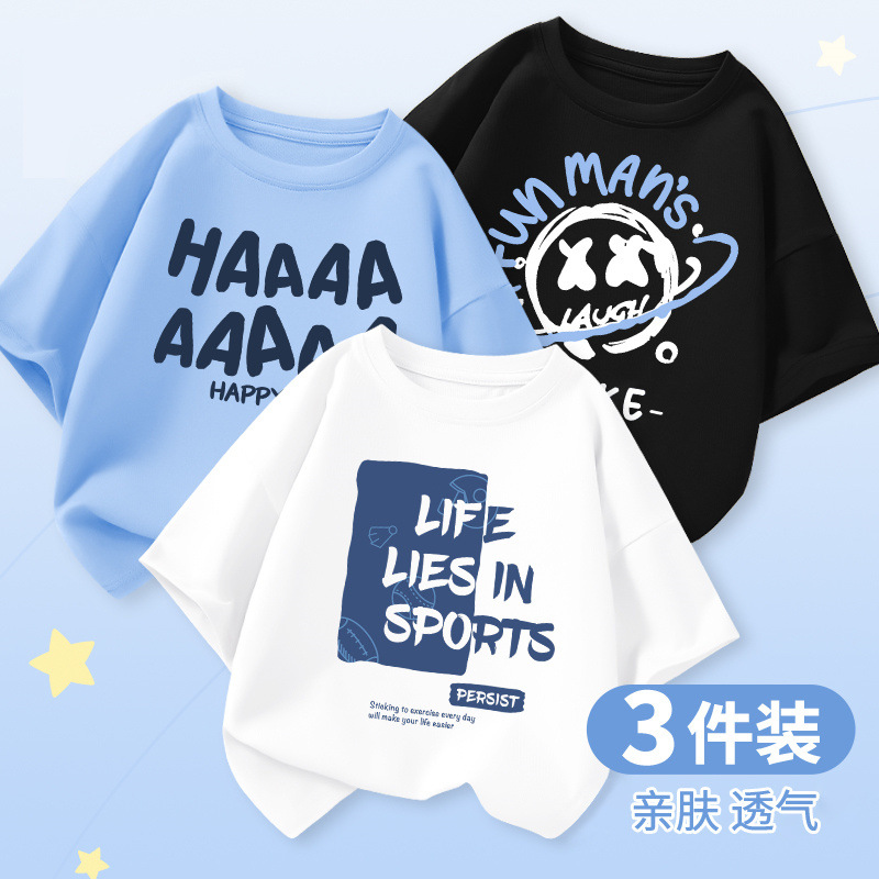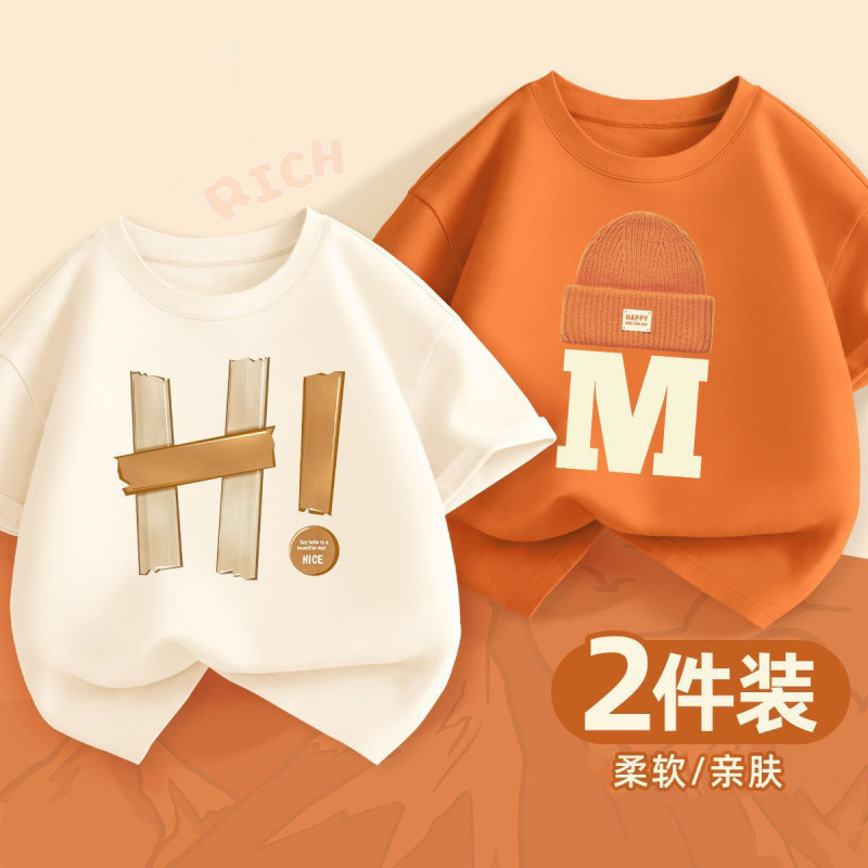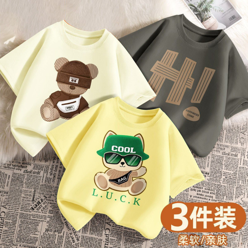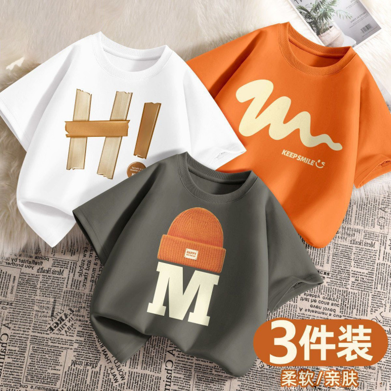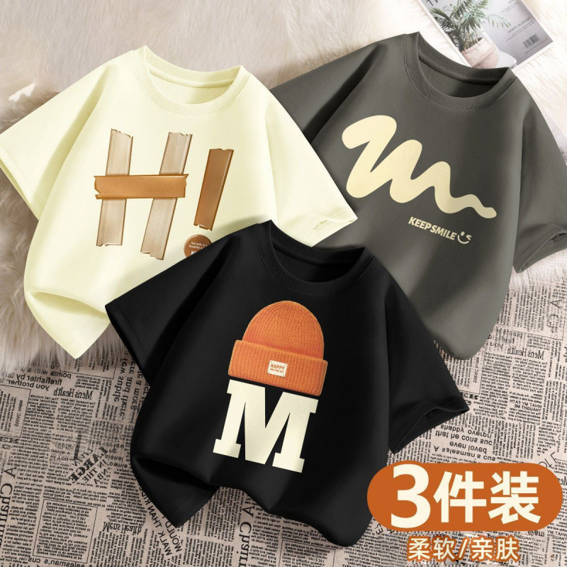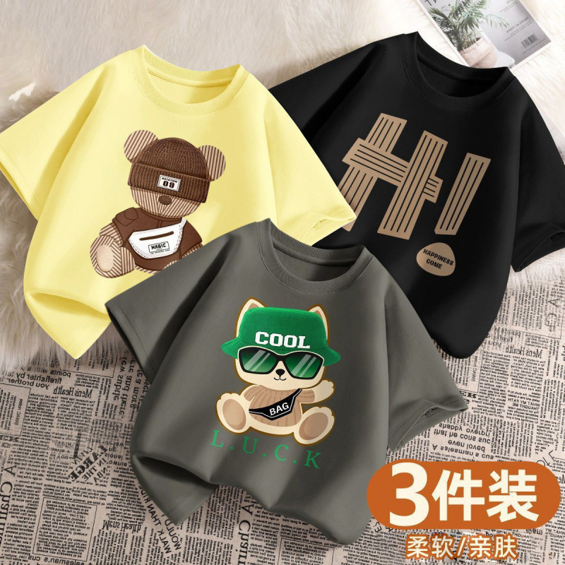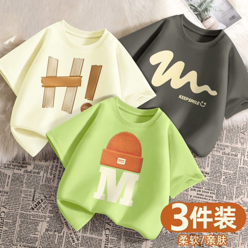 2025 새로운 어린이 반팔 티셔츠 소년 여름 기본 셔츠 중대형 어린이 캐주얼 만화 여름 옷 유행스토어 가기