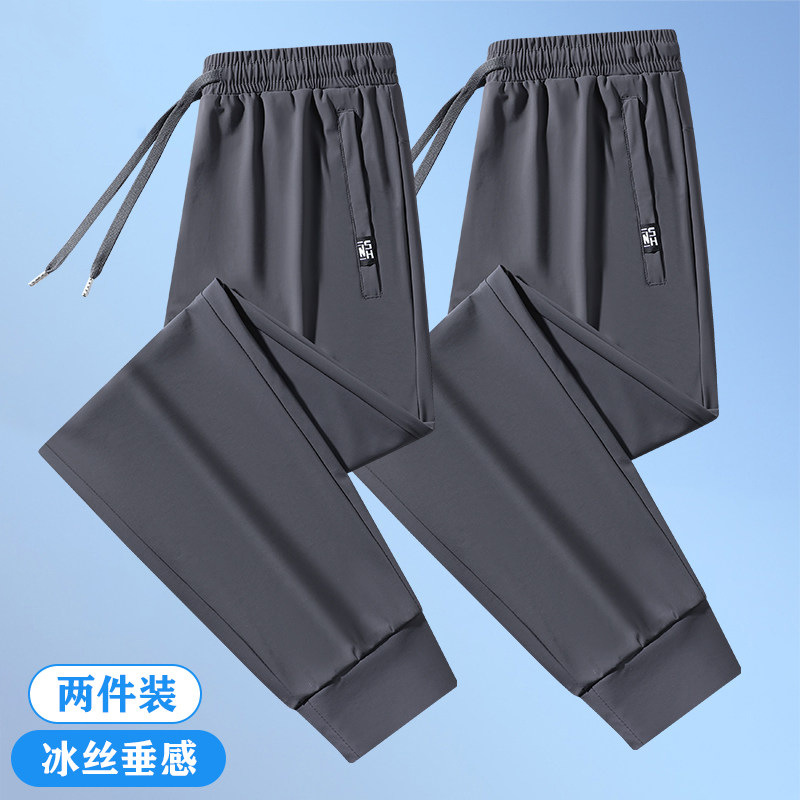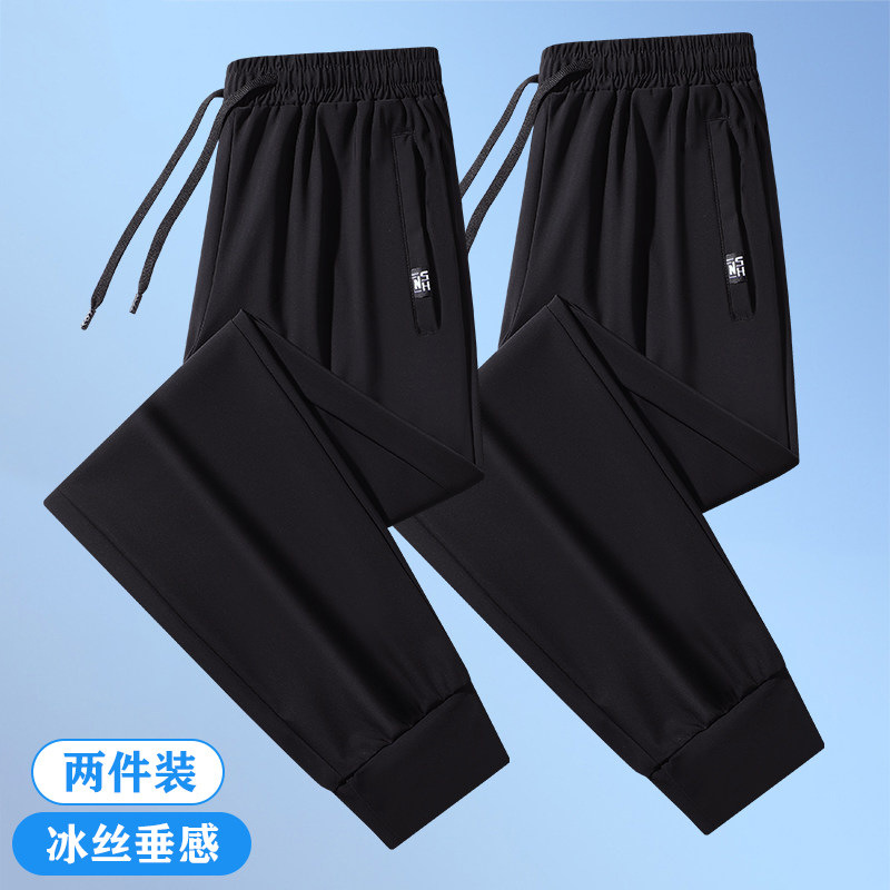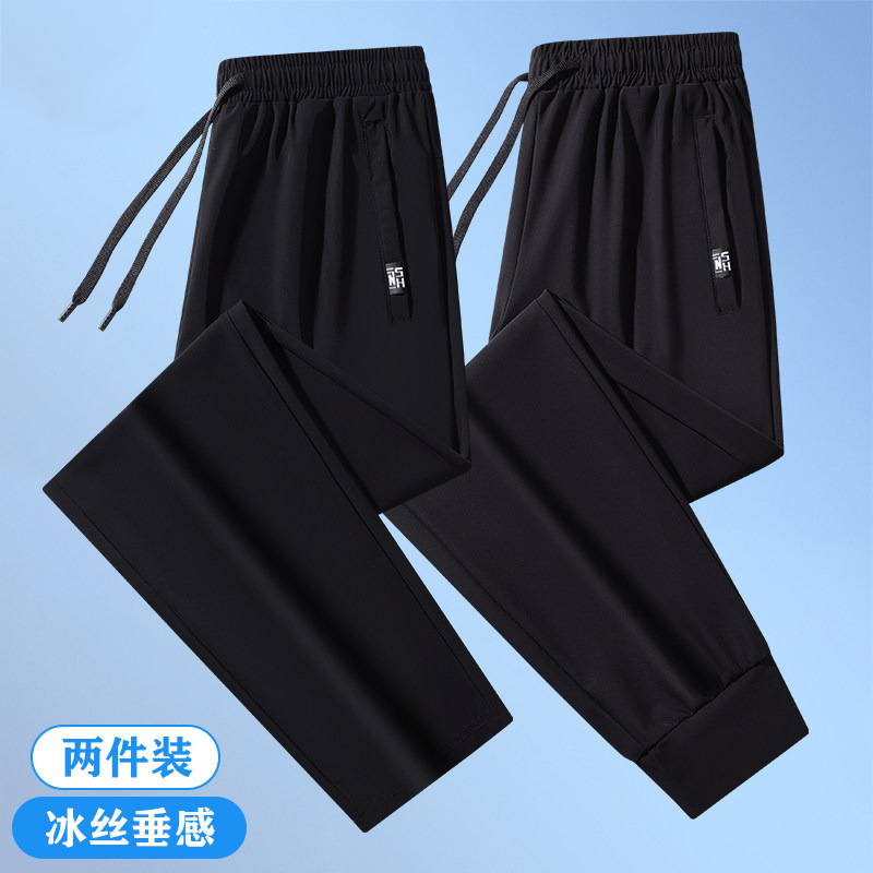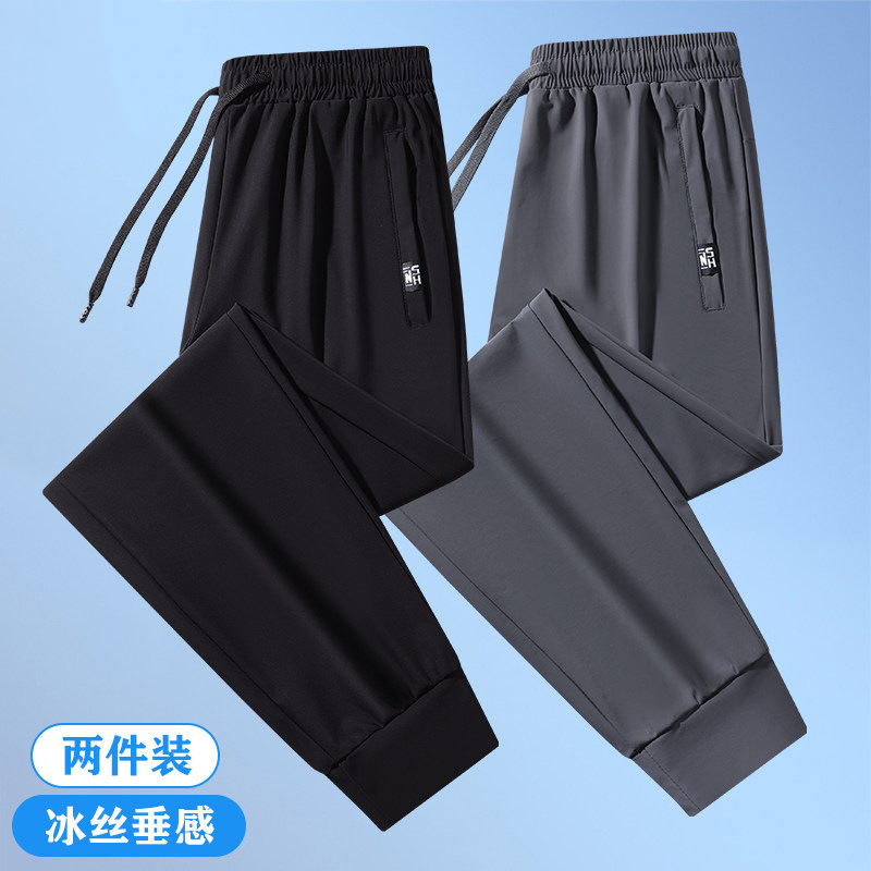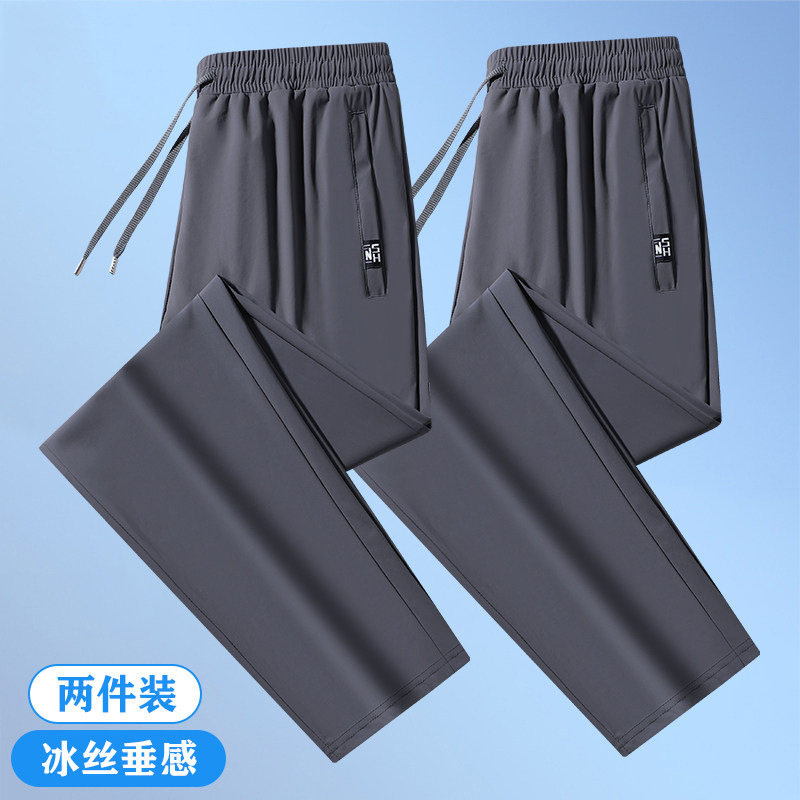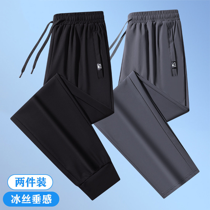 아이스 실크 바지 남성용 여름 얇은 캐주얼 바지 속건성 큰 사이즈 남성 바지 스트레이트 루즈핏 남성 스포츠 바지