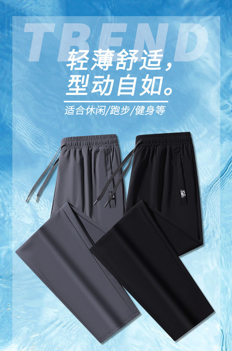 아이스 실크 바지 남성용 여름 얇은 캐주얼 바지 속건성 큰 사이즈 남성 바지 스트레이트 루즈핏 남성 스포츠 바지스토어 가기