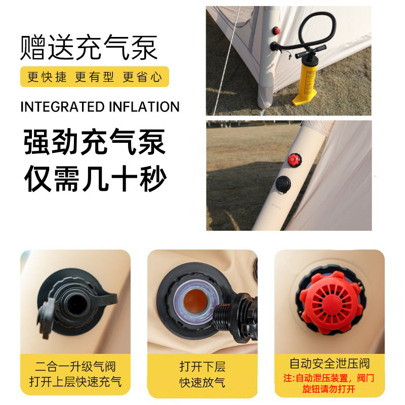 • TPU 공기 기둥 풍선 텐트에는 핸드 펌프가 함께 제공됩니다.