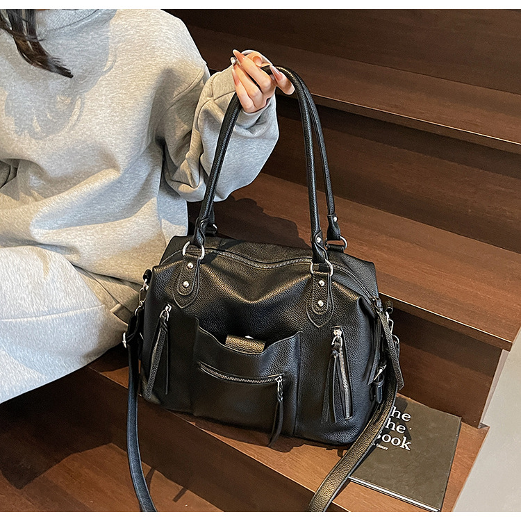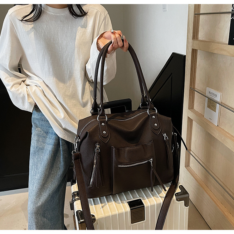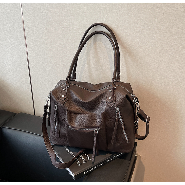 대용량 복고풍 숄더 토트 백 2025 새로운 통근 패션 다용도 크로스 바디 백 여성용 휴대용 겨드랑이 가방