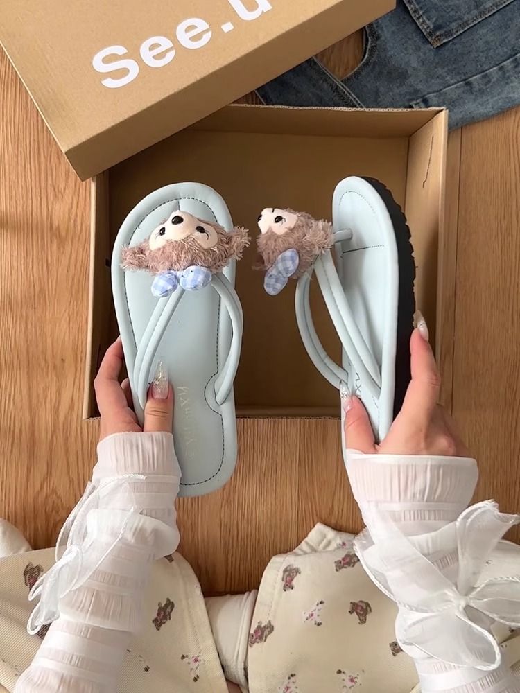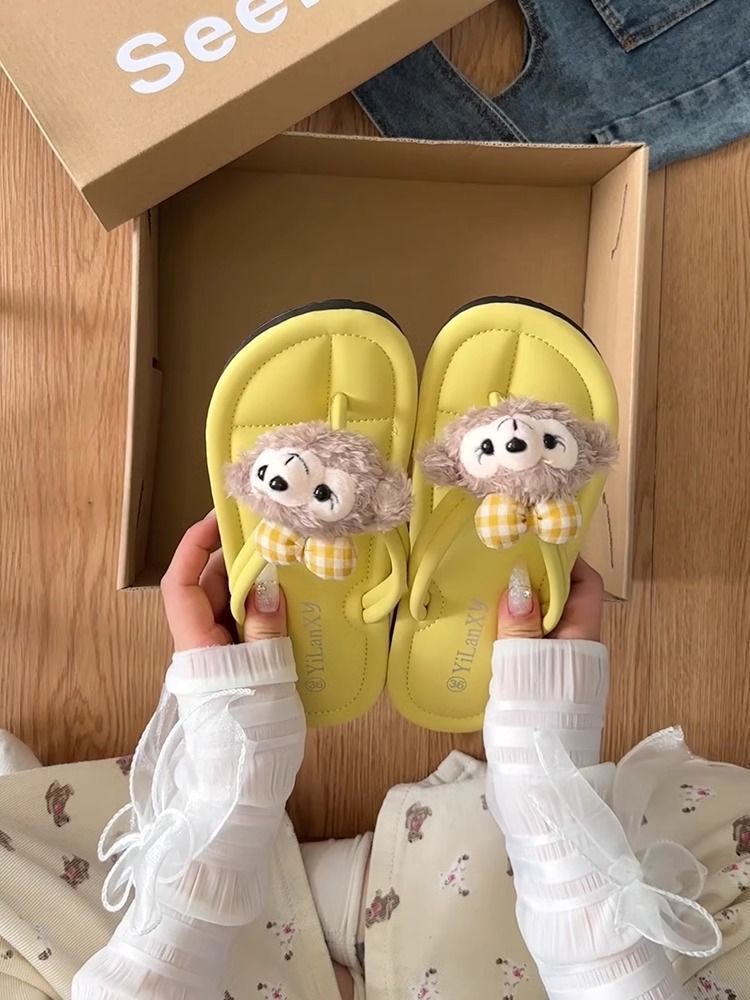 여름 겉옷을위한 작은 요정 만화 귀여운 셜리 로즈 플립 플롭 여성 2025 새로운 여름 두꺼운 밑창 플립 플롭스토어 가기