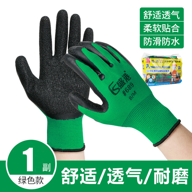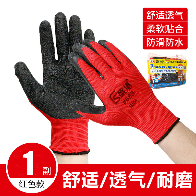 13바늘 주름 장갑, 건설 현장용 두꺼운 미끄럼 방지 및 내마모성 라텍스 노동 보호 장갑, 고무 함침 보호 장갑스토어 가기