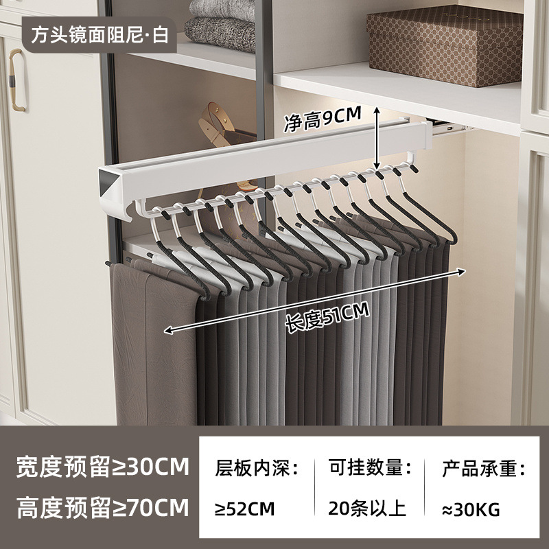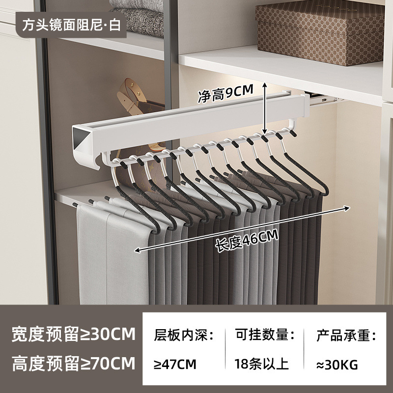 바지걸이, 텔레스코픽 다기능 가정용 옷장, 옷장 내장형 풀아웃 텔레스코픽 바지걸이, 상단 장착형 바지수납선반