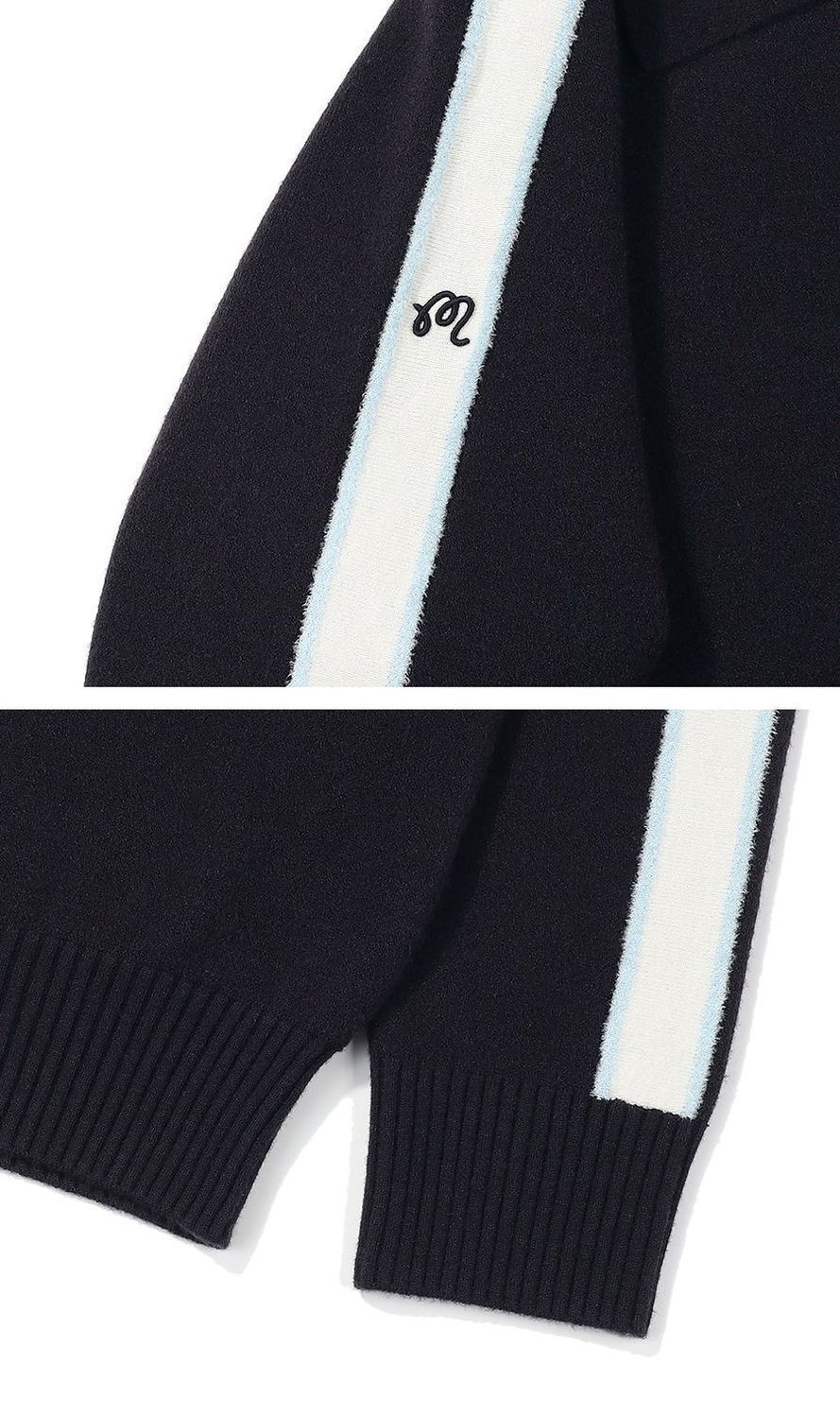 한국 골프웨어 24세 여성 가을 겨울 배색 로고 패턴 버튼 라펠 스웨터 루즈한 긴팔