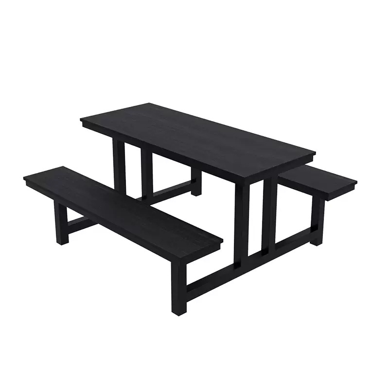 야외 일체형 테이블과 의자 조합 공원 알루미늄 프레임 아트 가든 안뜰 경관 벤치 목재 색상 방수 PE 플라스틱 목재 테이블과 의자스토어 가기