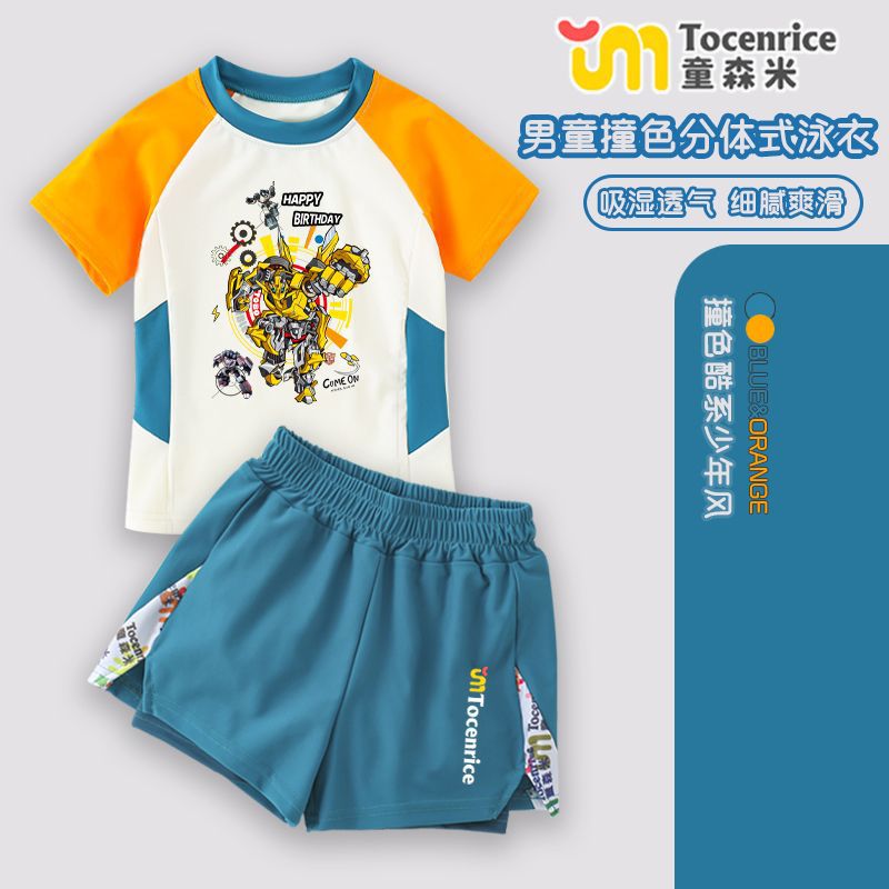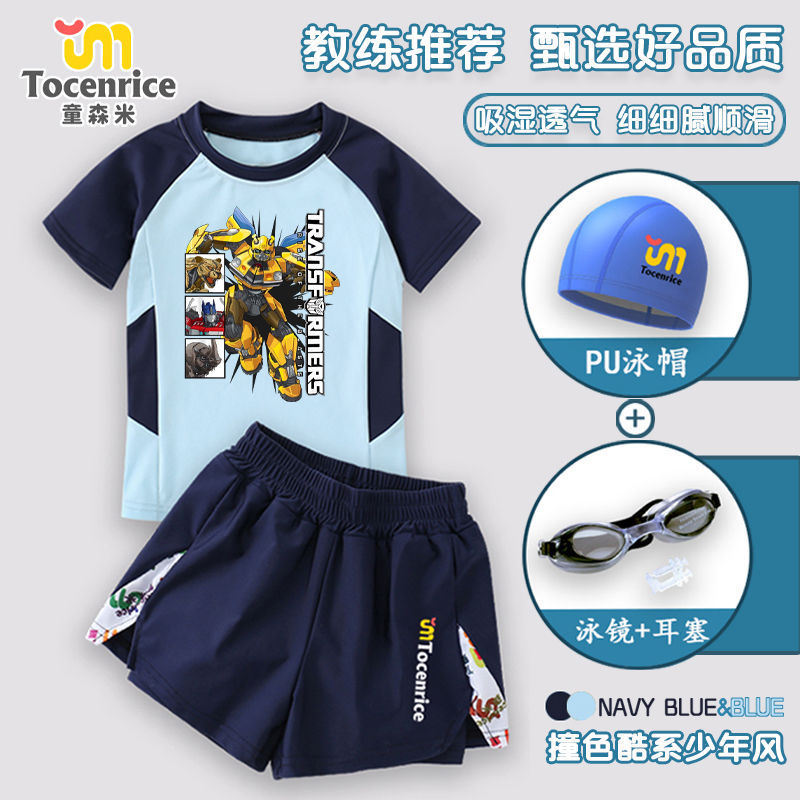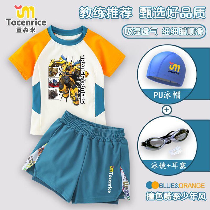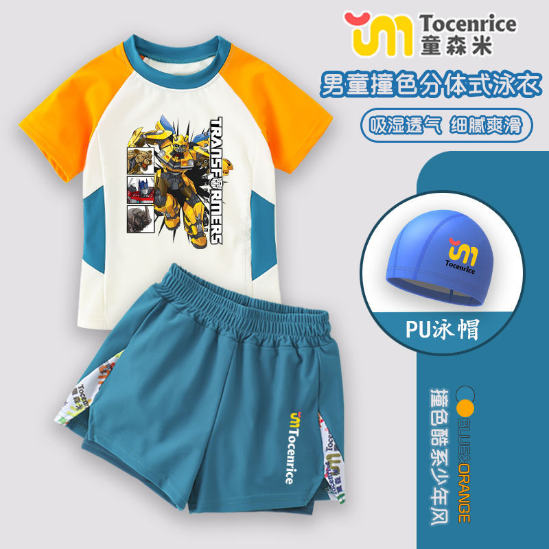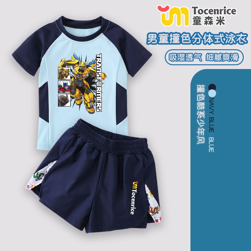 2025 새로운 Transformers 소년 스플릿 수영복 수영 트렁크 Bumblebee 어린이 속건성 태양 보호 수영복 소년 유행스토어 가기