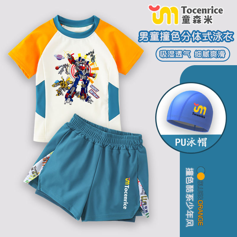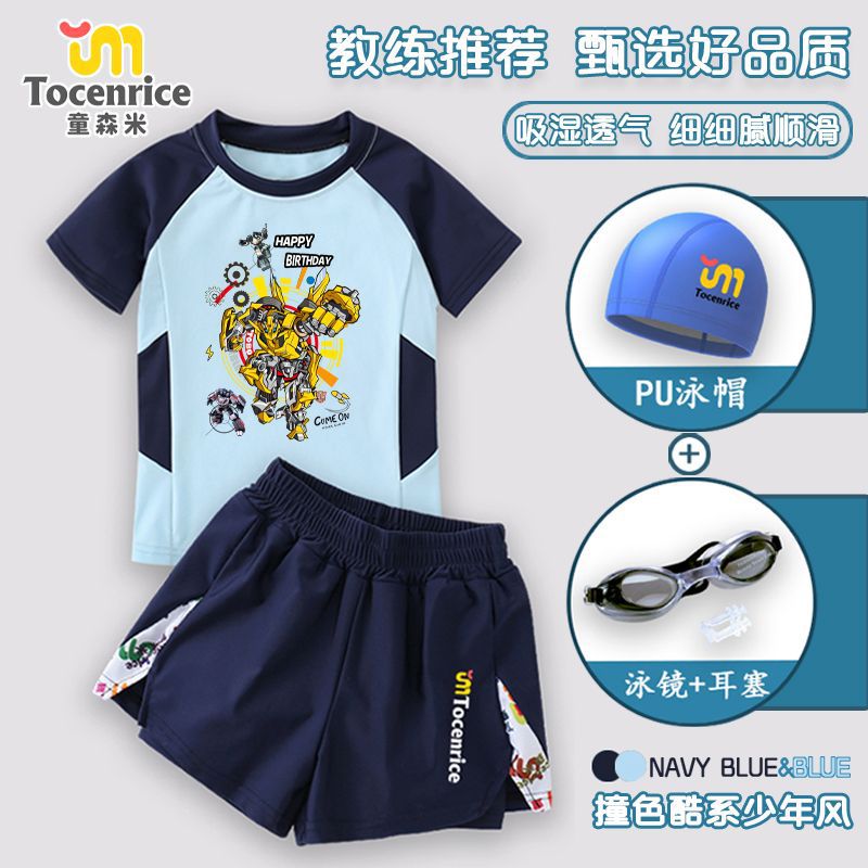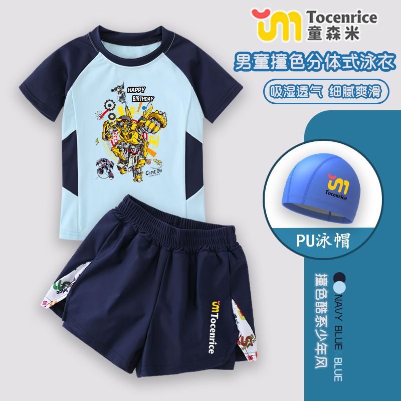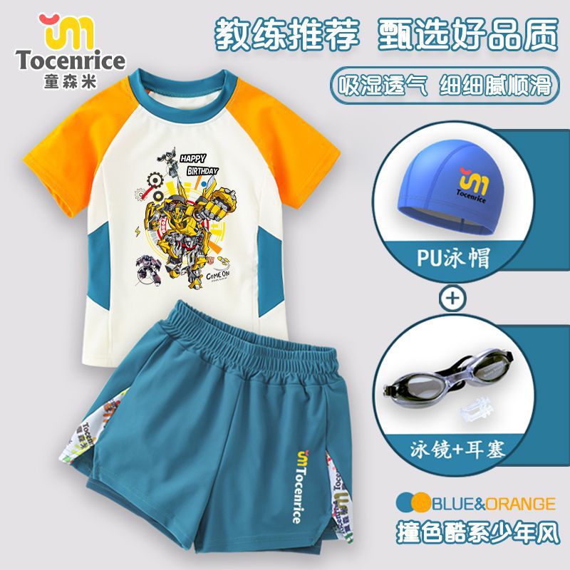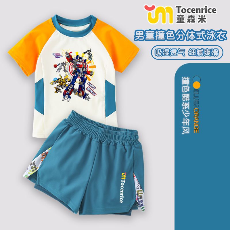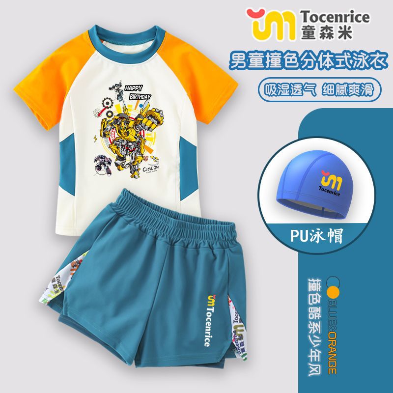2025 새로운 Transformers 소년 스플릿 수영복 수영 트렁크 Bumblebee 어린이 속건성 태양 보호 수영복 소년 유행스토어 가기
