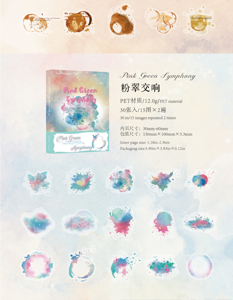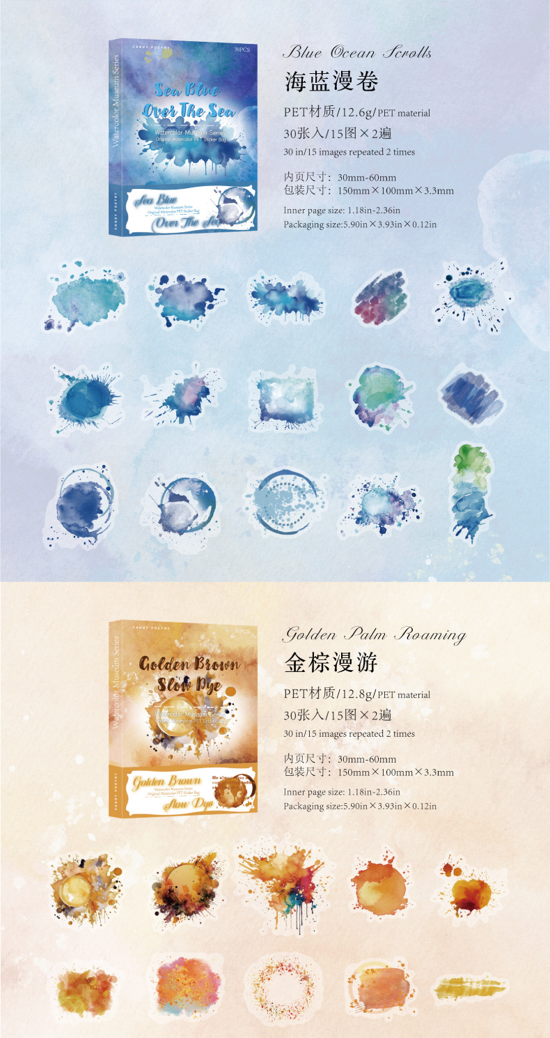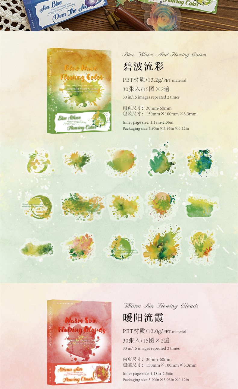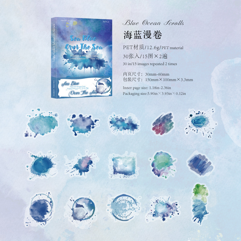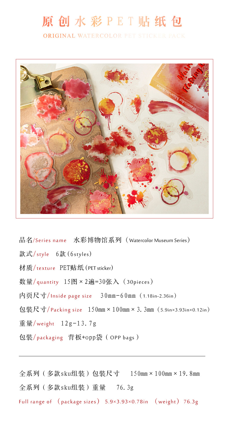 설탕시 애완 동물 흰색 잉크 스티커 가방-수채화 박물관 시리즈 6 30 손 계정 콜라주 장식 재료스토어 가기