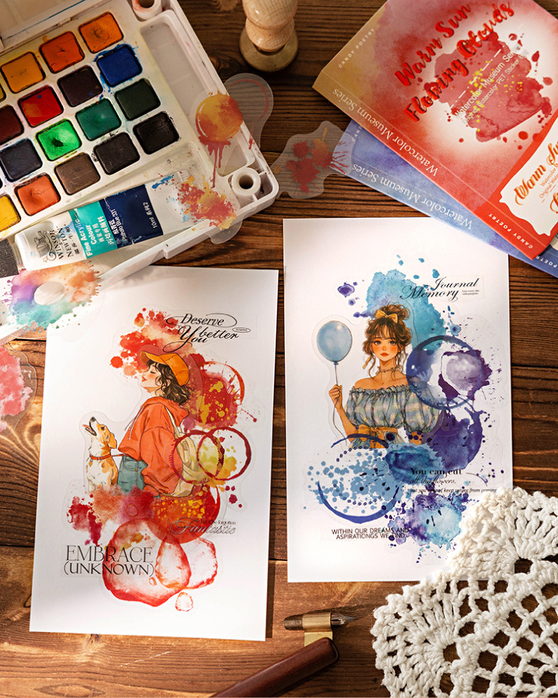 설탕시 애완 동물 흰색 잉크 스티커 가방-수채화 박물관 시리즈 6 30 손 계정 콜라주 장식 재료