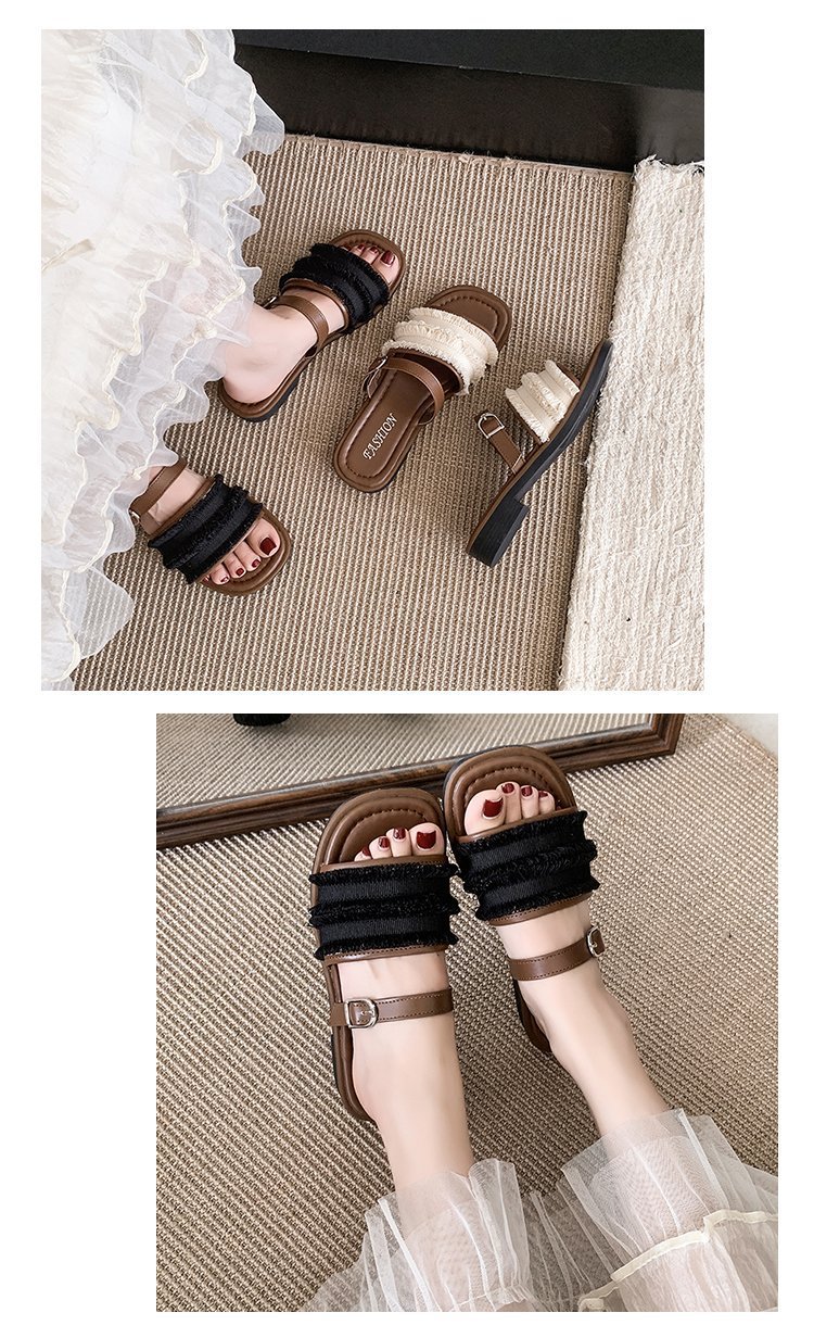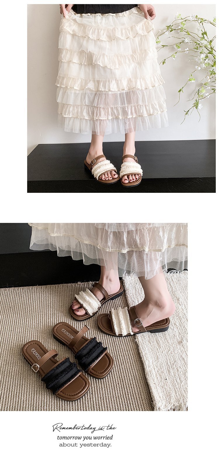 여성용 Yi Yuan 슬리퍼 2025 새로운 여름 프렌치 스타일 스커트 여성용 작은 향기로운 비치 샌들스토어 가기