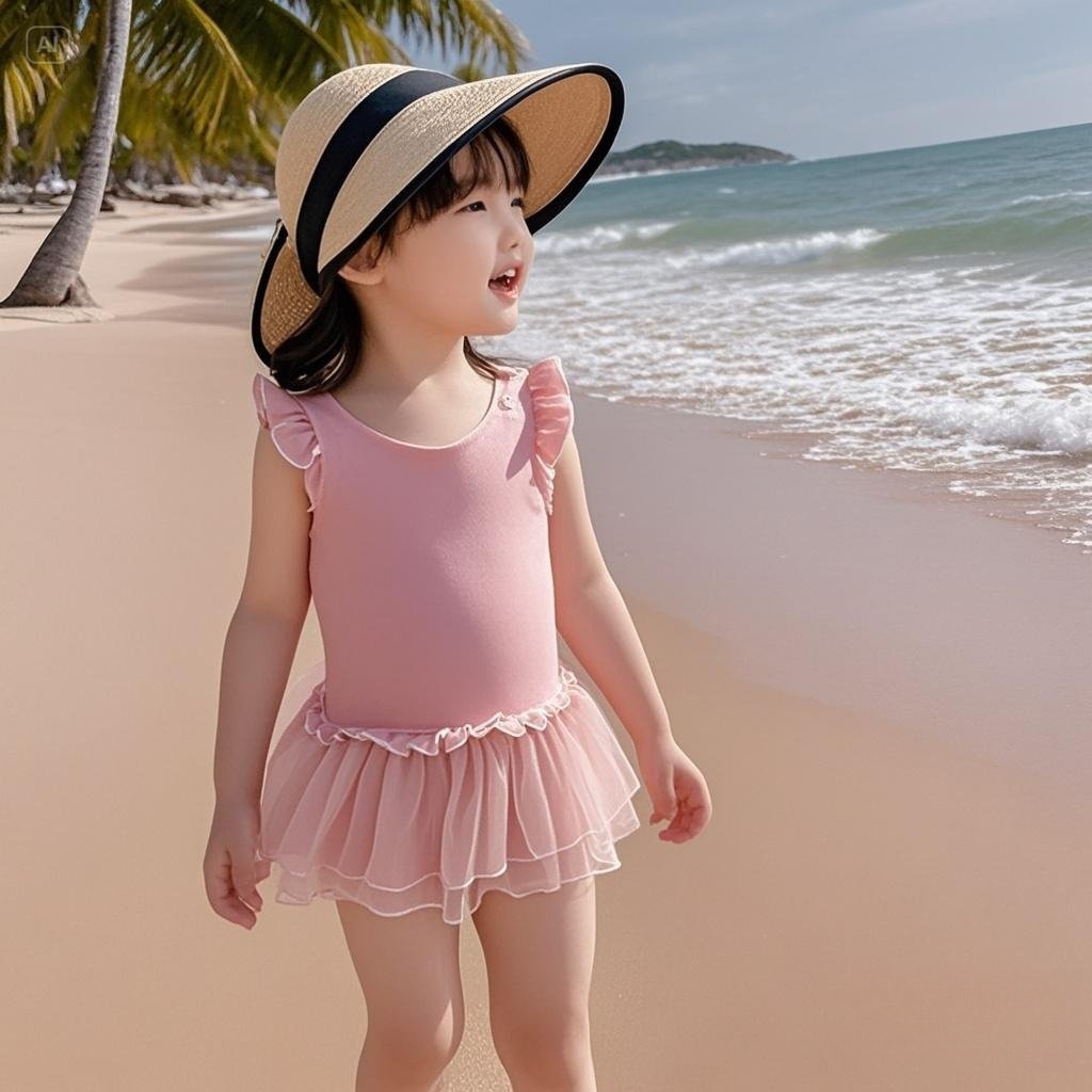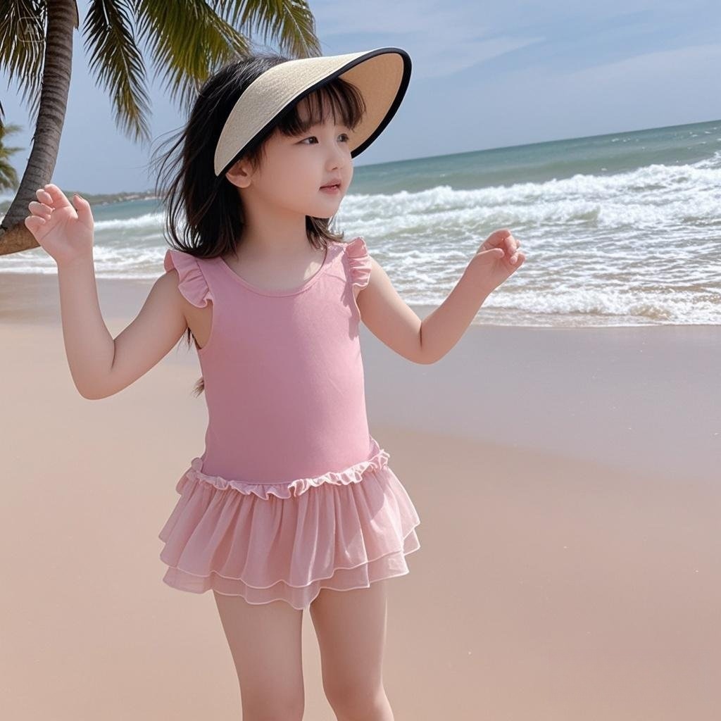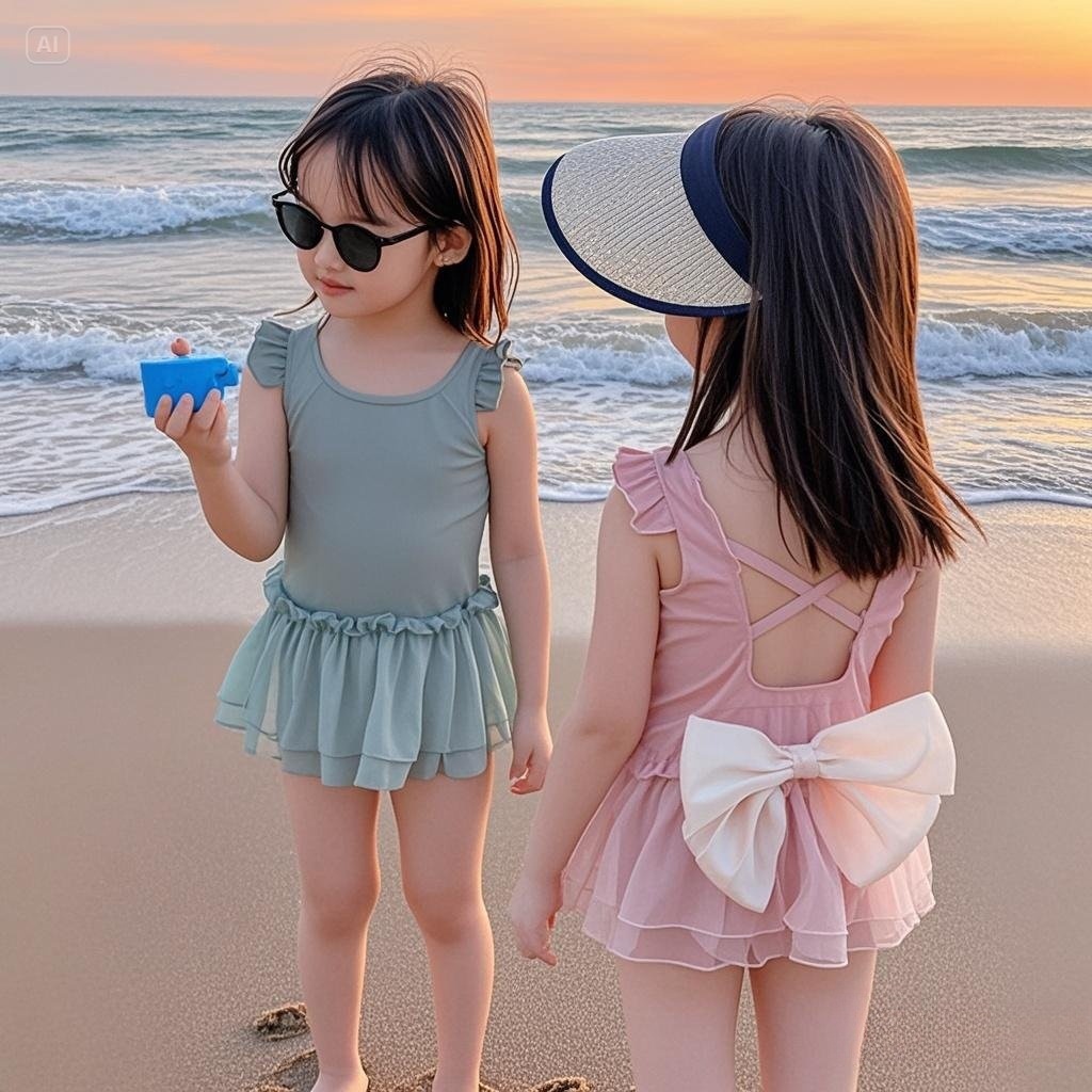 여자 수영 세트 2025 새로운 어린이 바디 스커트 수영복 솔리드 컬러 귀여운 아기 공주 수영복스토어 가기