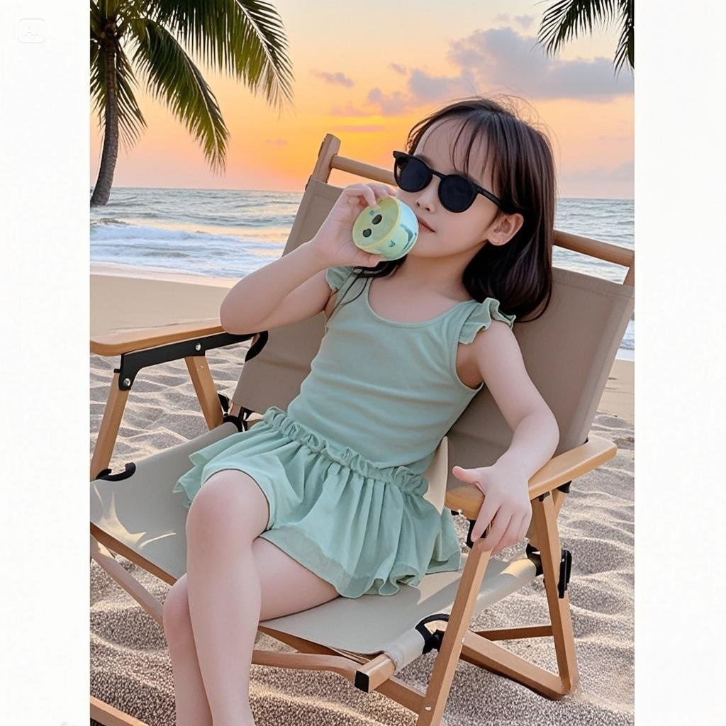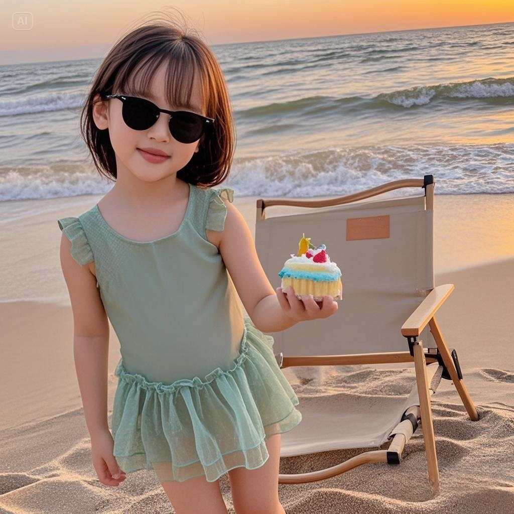 여자 수영 세트 2025 새로운 어린이 바디 스커트 수영복 솔리드 컬러 귀여운 아기 공주 수영복