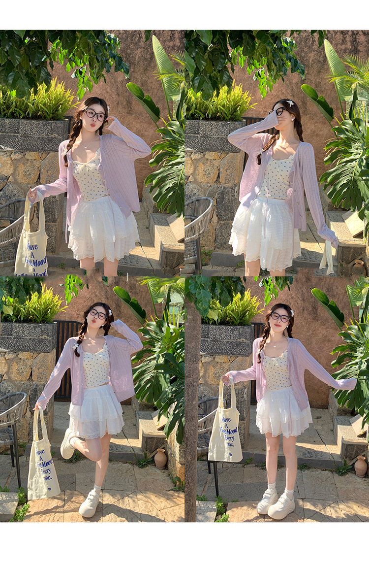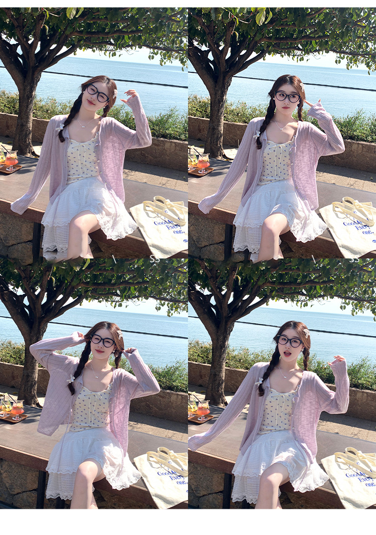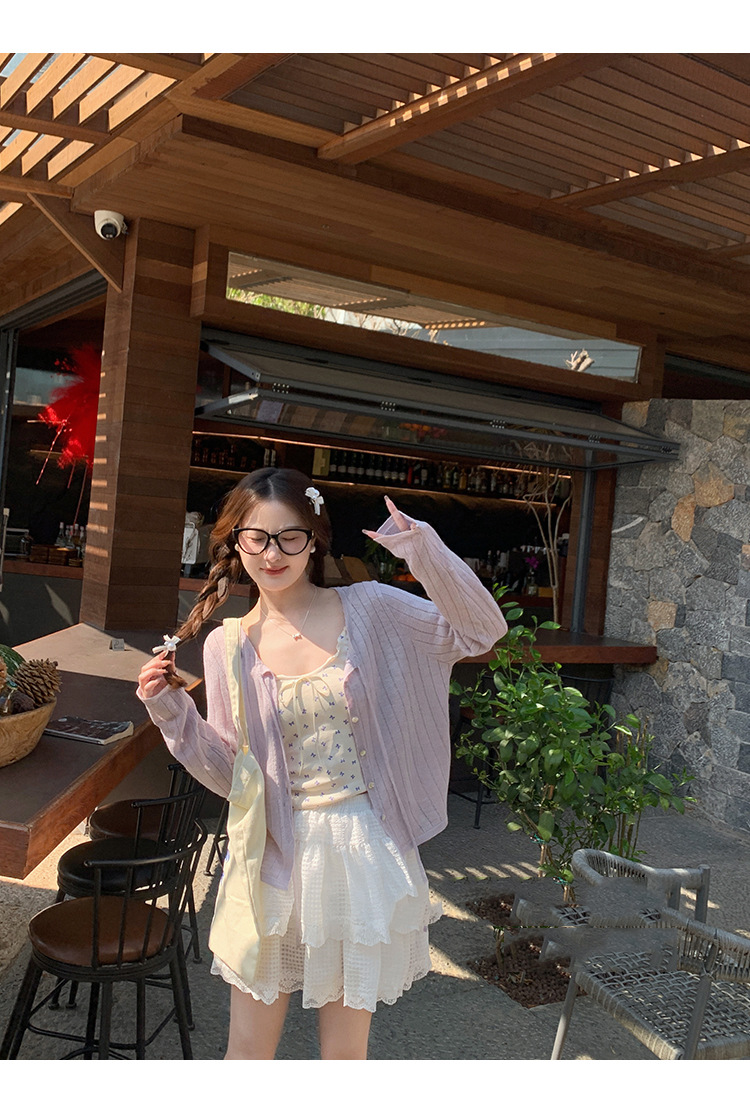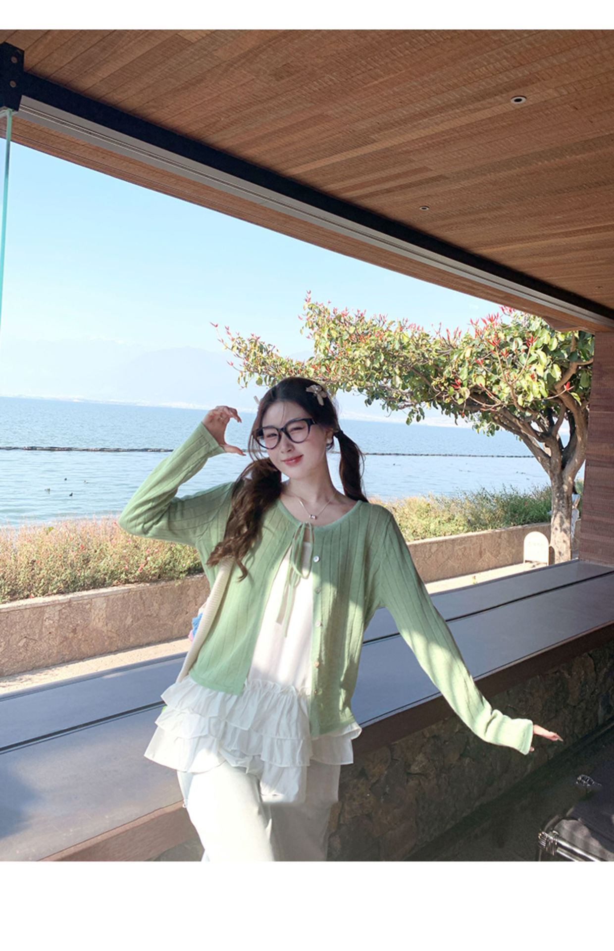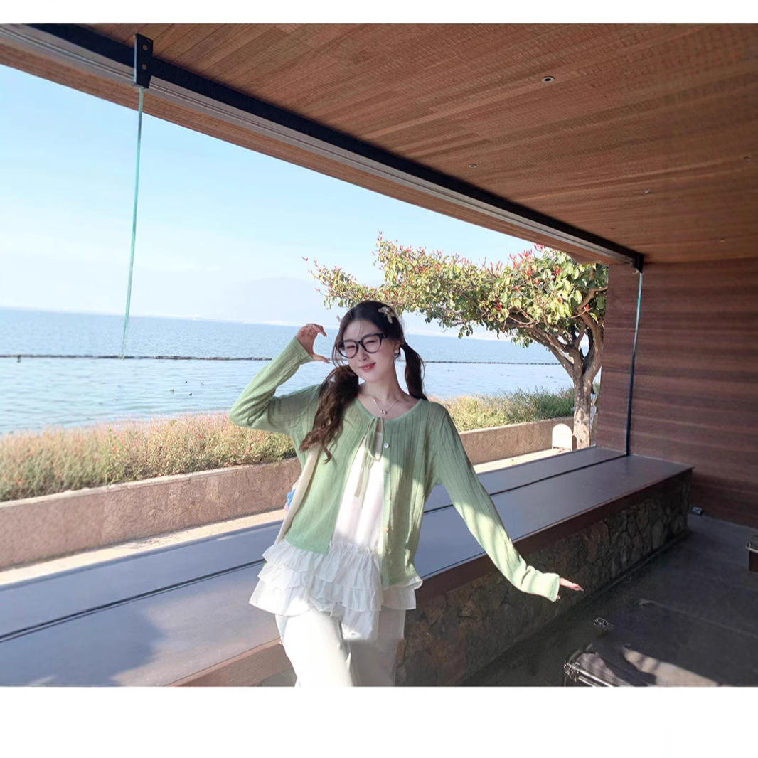 국경을 넘나드는 캔디 컬러 디자인 틈새 달콤한 여자 얼음 실크 얇은 에어컨 블라우스 짧은 자외선 차단 의류 카디건 탑