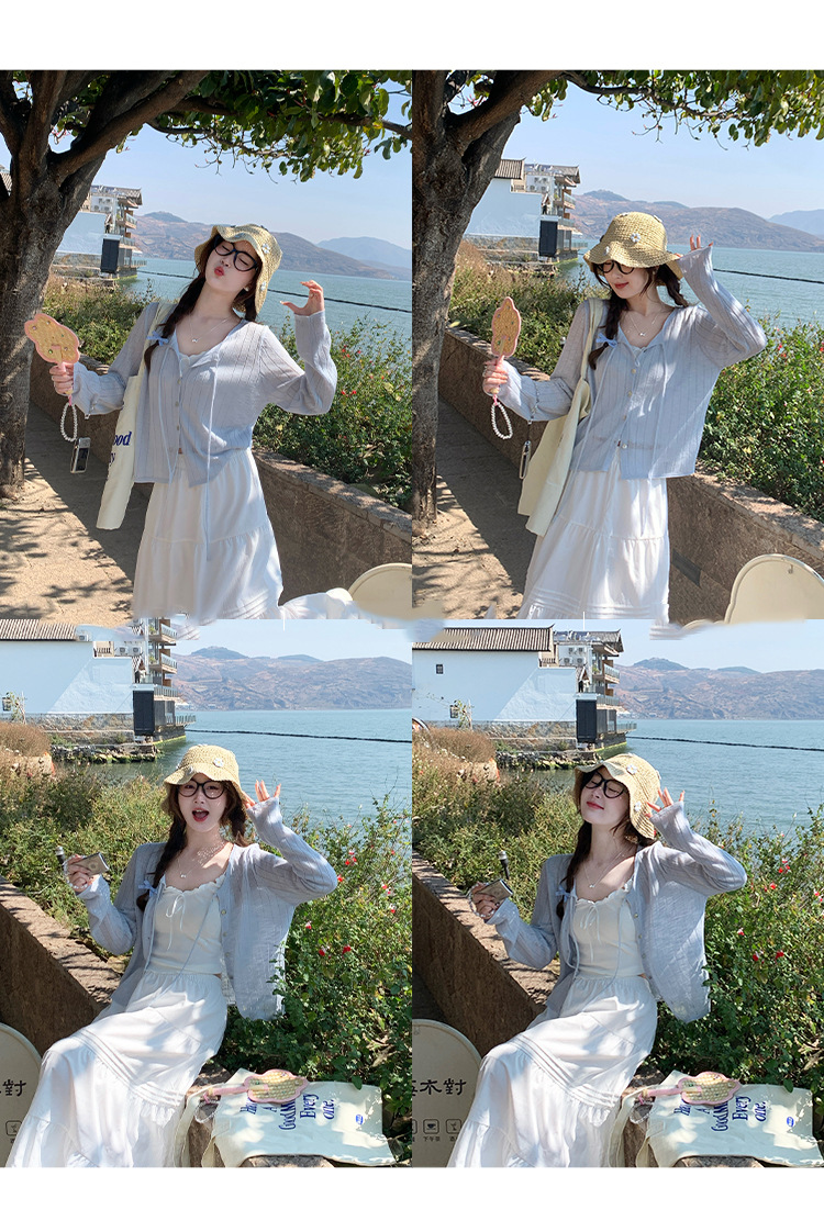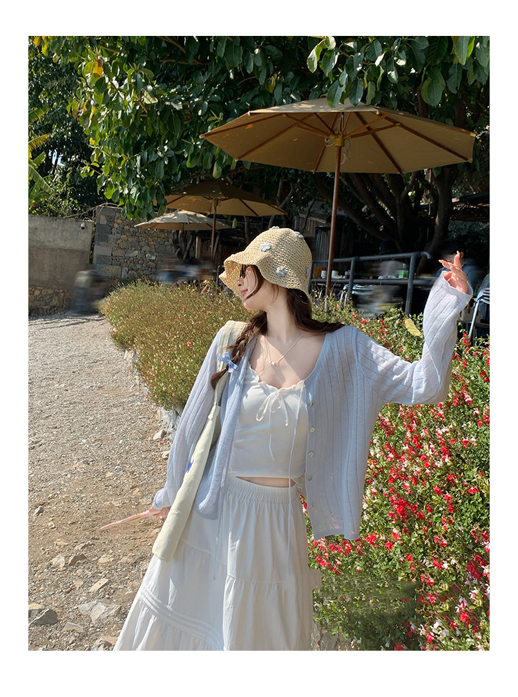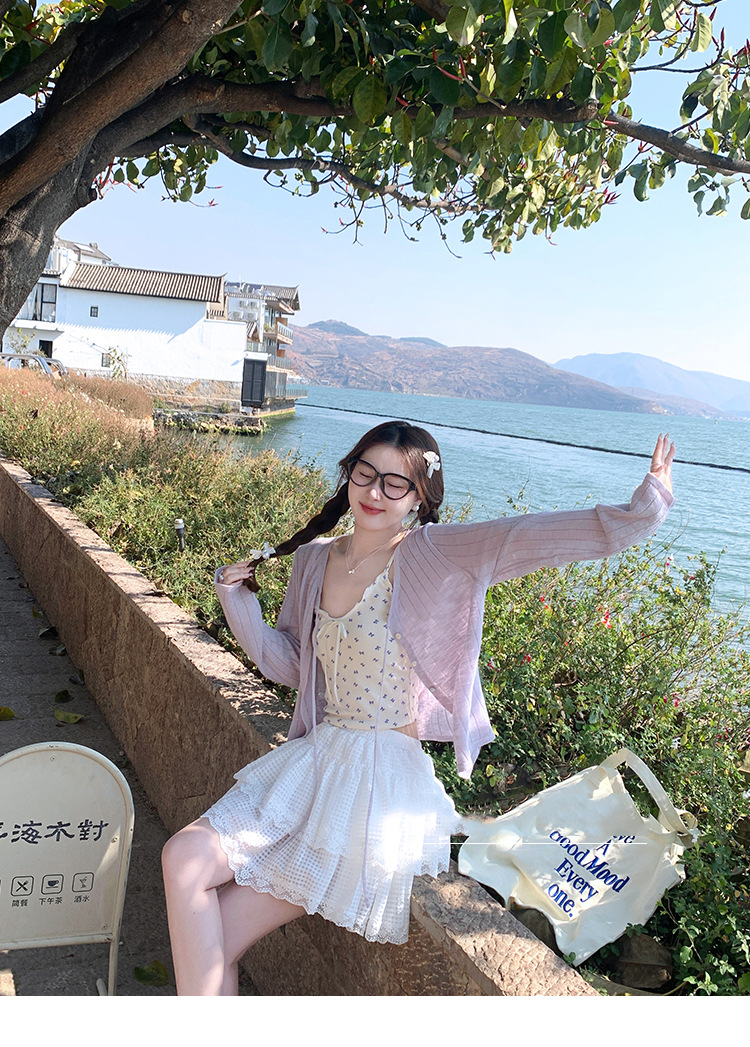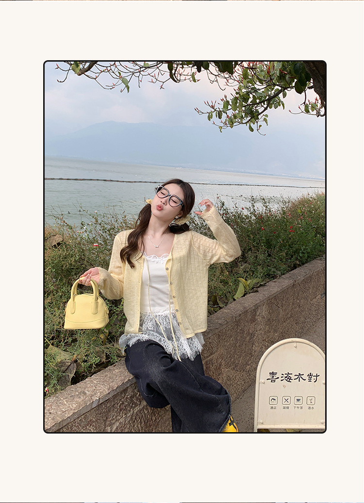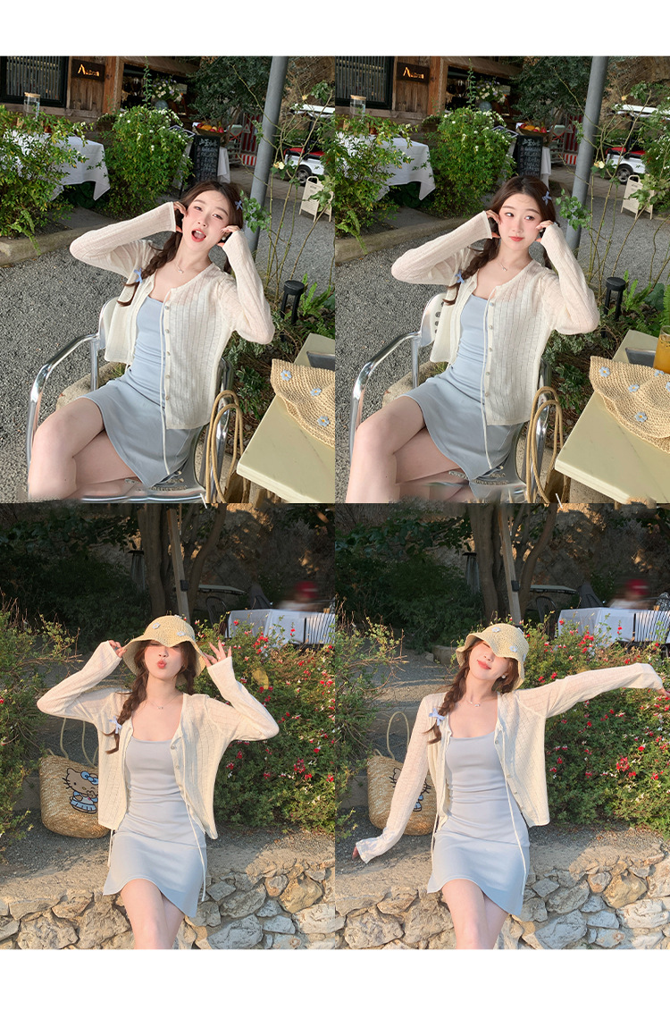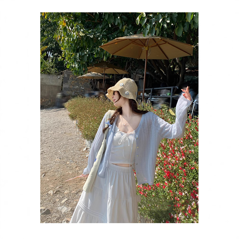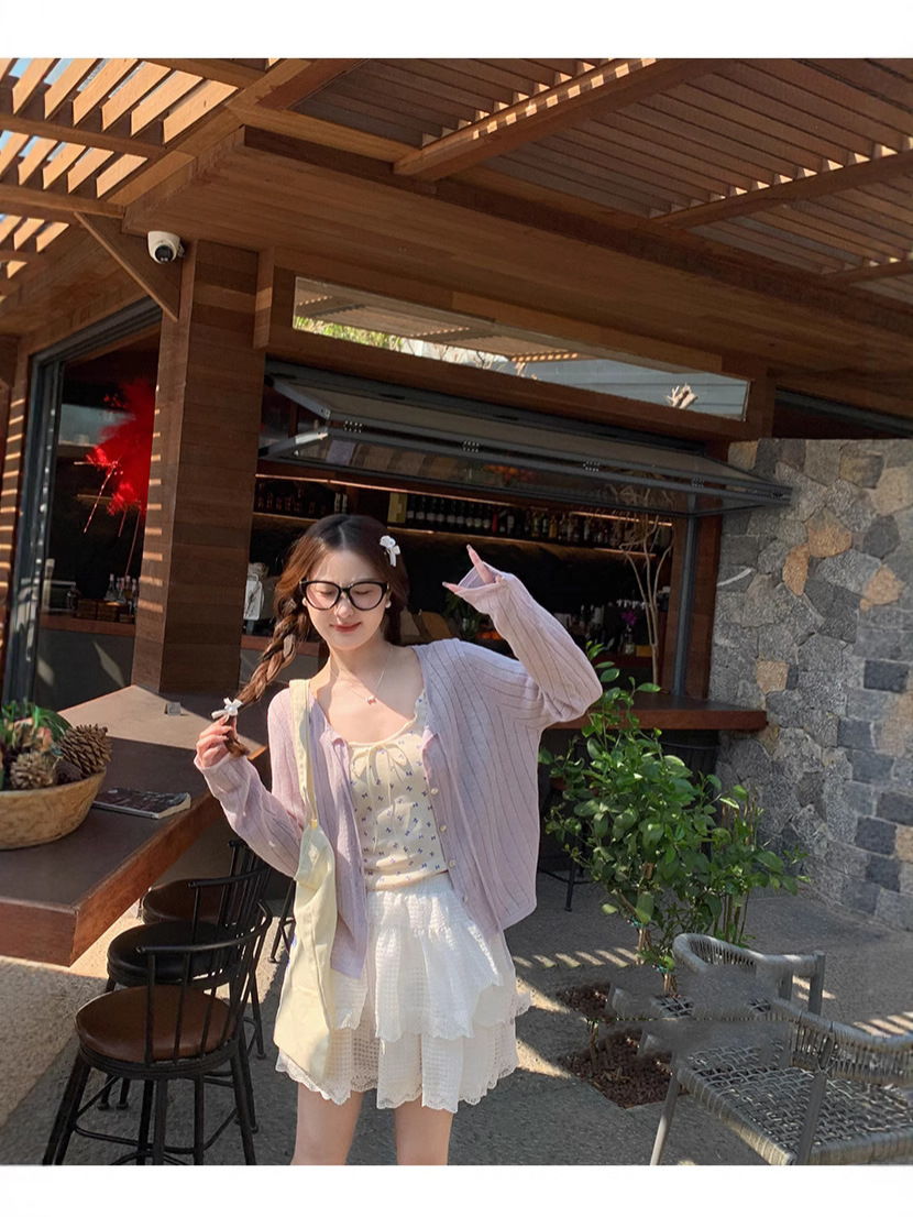 국경을 넘나드는 캔디 컬러 디자인 틈새 달콤한 여자 얼음 실크 얇은 에어컨 블라우스 짧은 자외선 차단 의류 카디건 탑