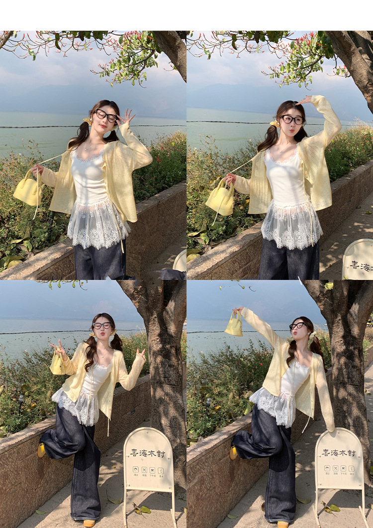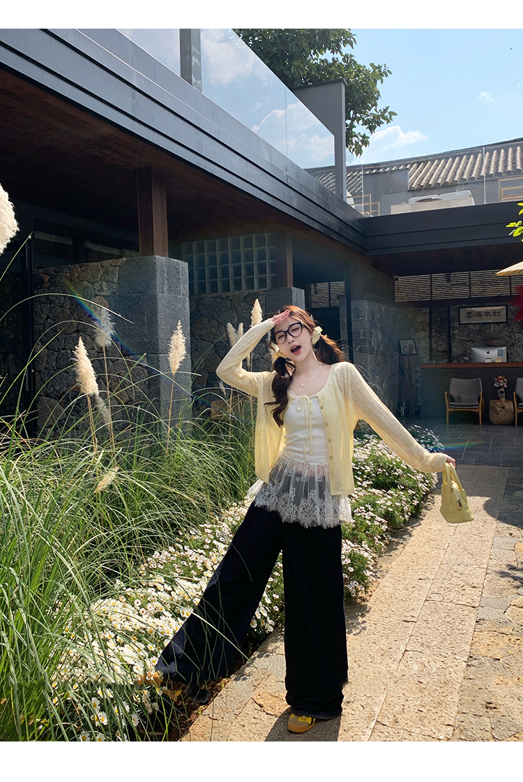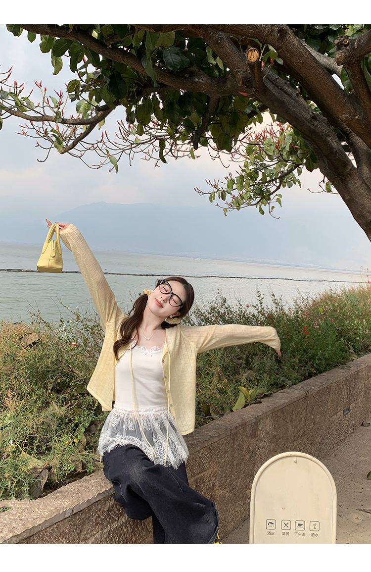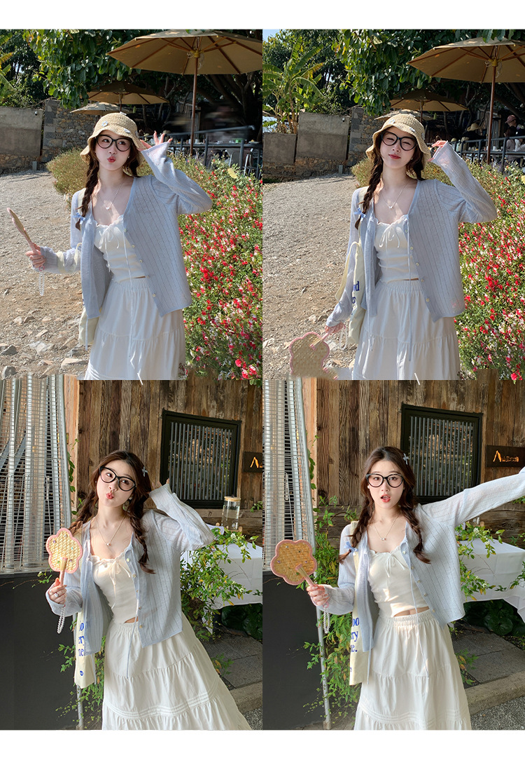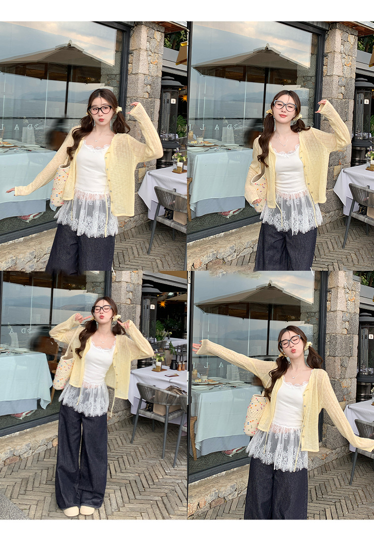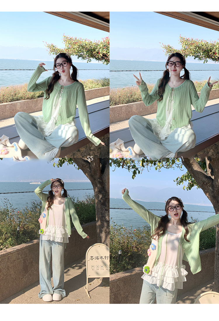 국경을 넘나드는 캔디 컬러 디자인 틈새 달콤한 여자 얼음 실크 얇은 에어컨 블라우스 짧은 자외선 차단 의류 카디건 탑