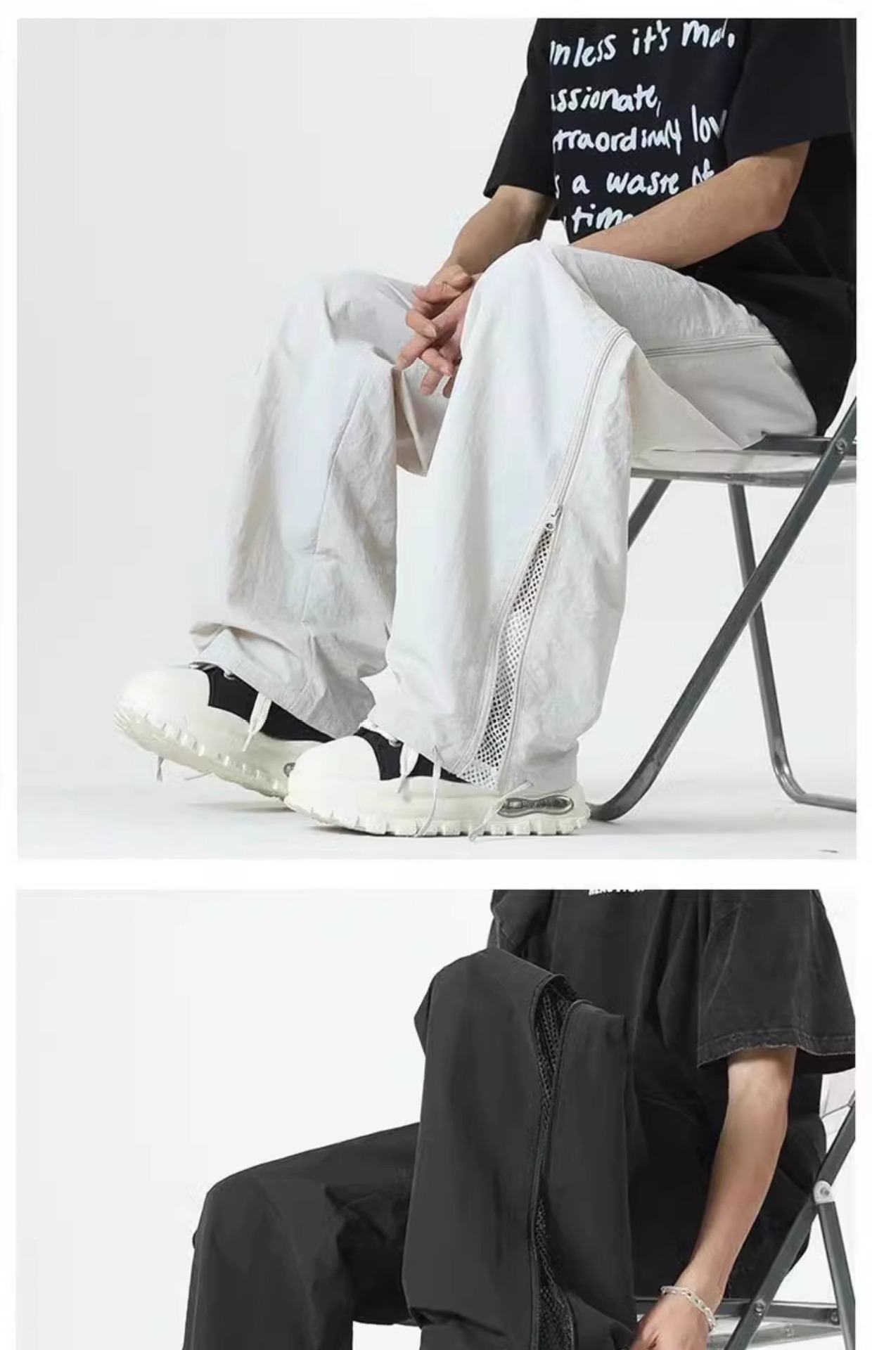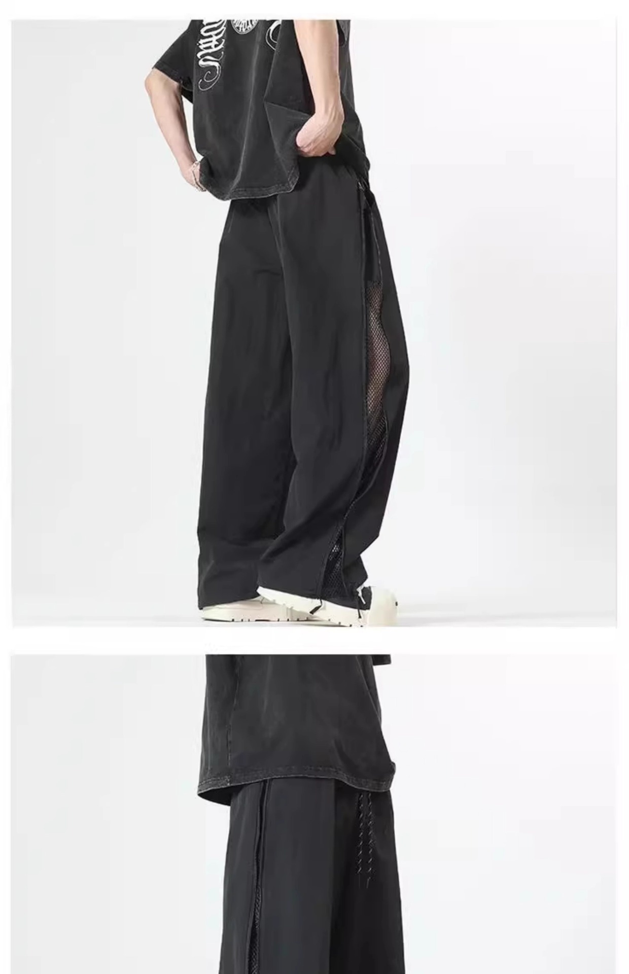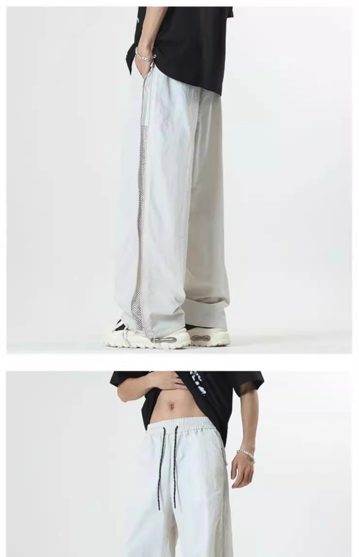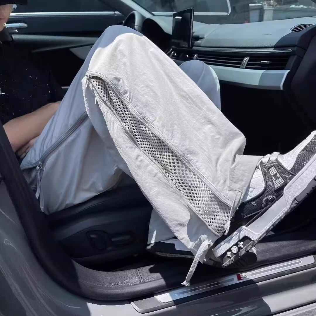여름용 남성용 미국 공수군 바지, 사이드 지퍼 스트레이트 팬츠, 메쉬 통기성 야외 등산 속건성 충전 바지스토어 가기