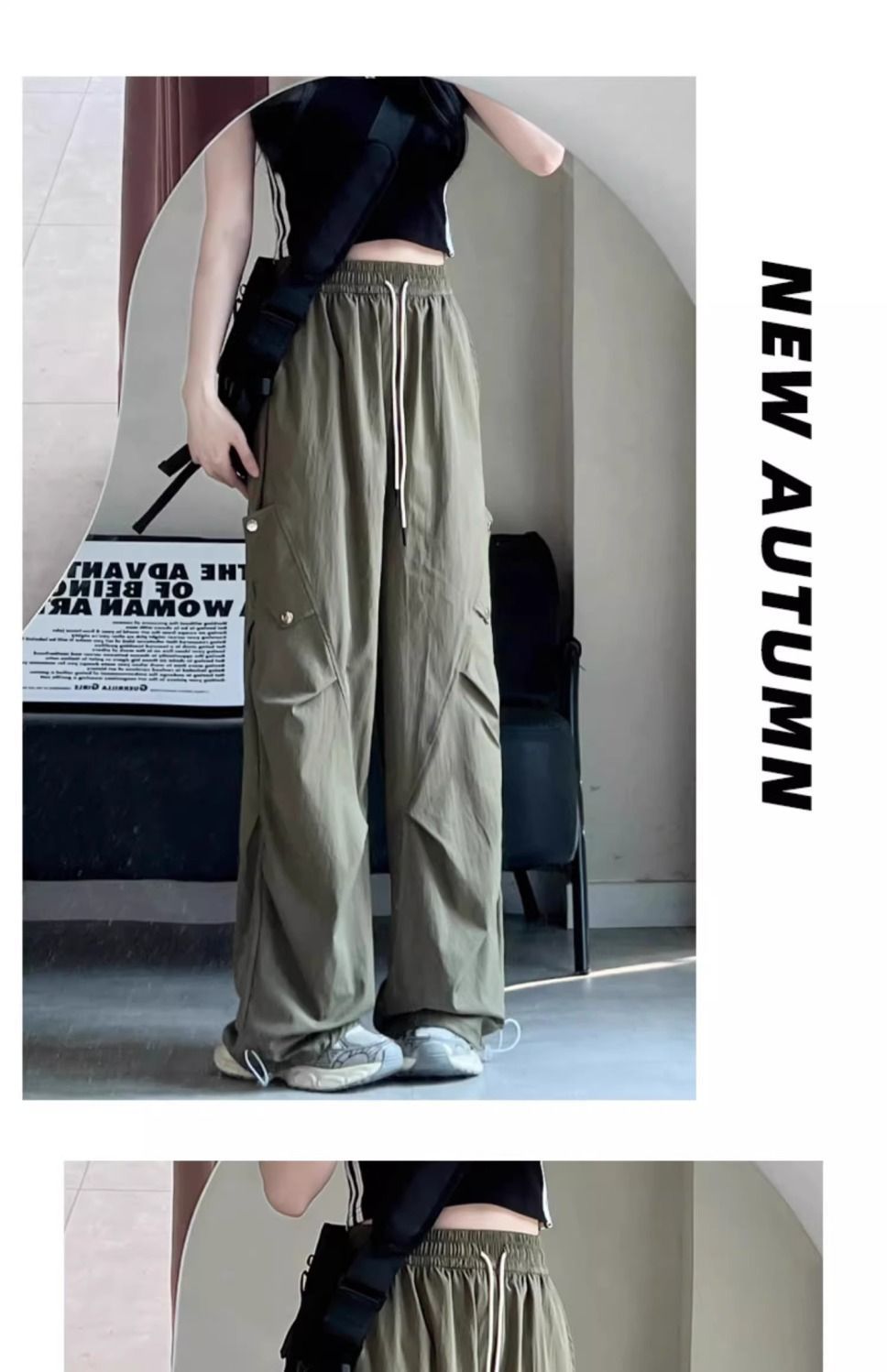 여성용 작업복 봄 여름 2025 새로운 하이 웨이스트 루즈 스트레이트 아메리칸 아미 그린 캐주얼 야외 등산 스포츠 바지