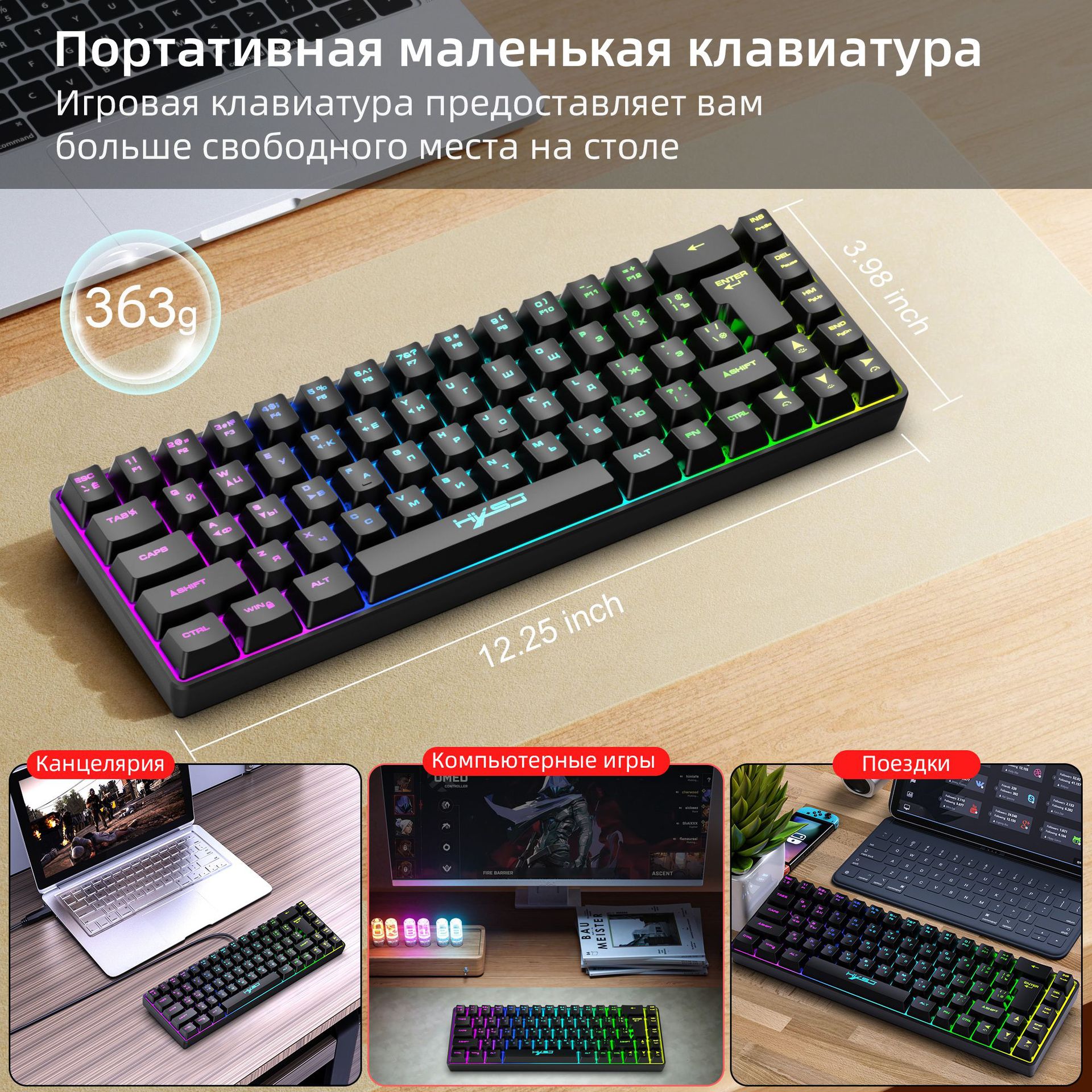 2. Mini keyboard with ergonomic design and full support for combination keys, ideal for both gaming and office use. Portable and easy to operate.