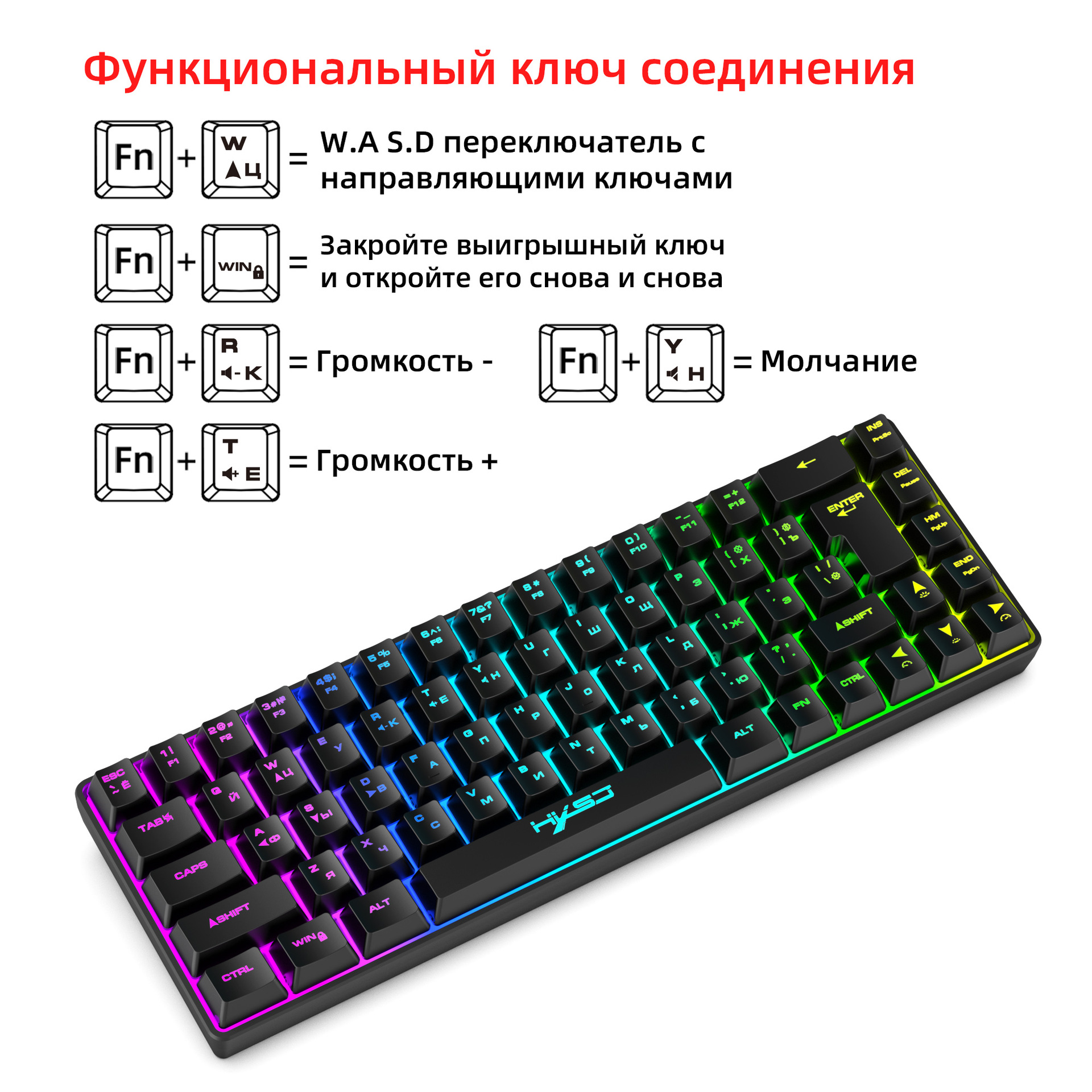 FN+W: W.A S.D key and arrow key switching function, cyclic switching;