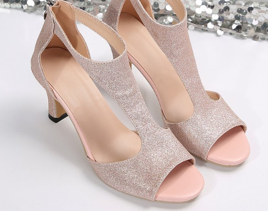 유럽과 미국의 심플하고 패셔너블한 여성용 백 지퍼 백 힐 및 피쉬 입 신발 여름 대외 무역 대형 사이드 빈 스틸레토 로마 샌들 도매스토어 가기