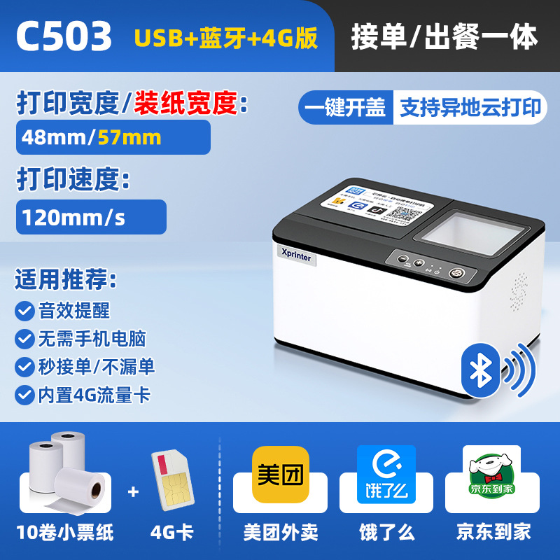 • C503 [USB+블루투스+4G] 클라우드 프린팅 및 식사 일체형 기계, 테이크아웃 프린팅의 새로운 트렌드