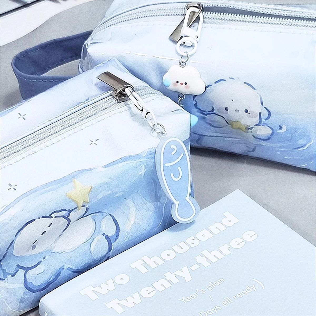 샤오홍슈의 개학 필수 필통, 수영강아지 고급 필통, PVC 투명인스, 중고생을 위한 대용량 필통스토어 가기