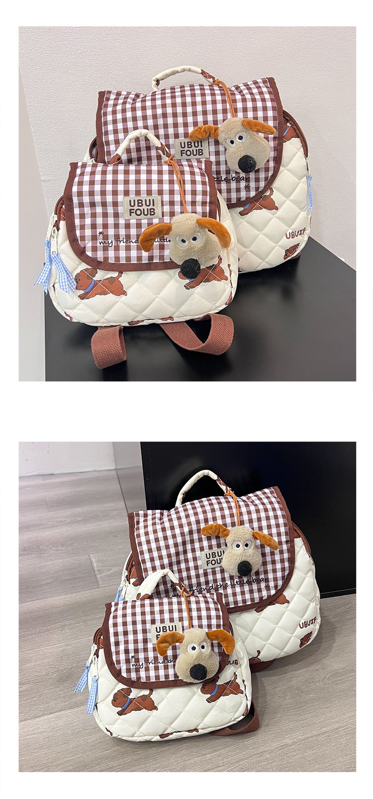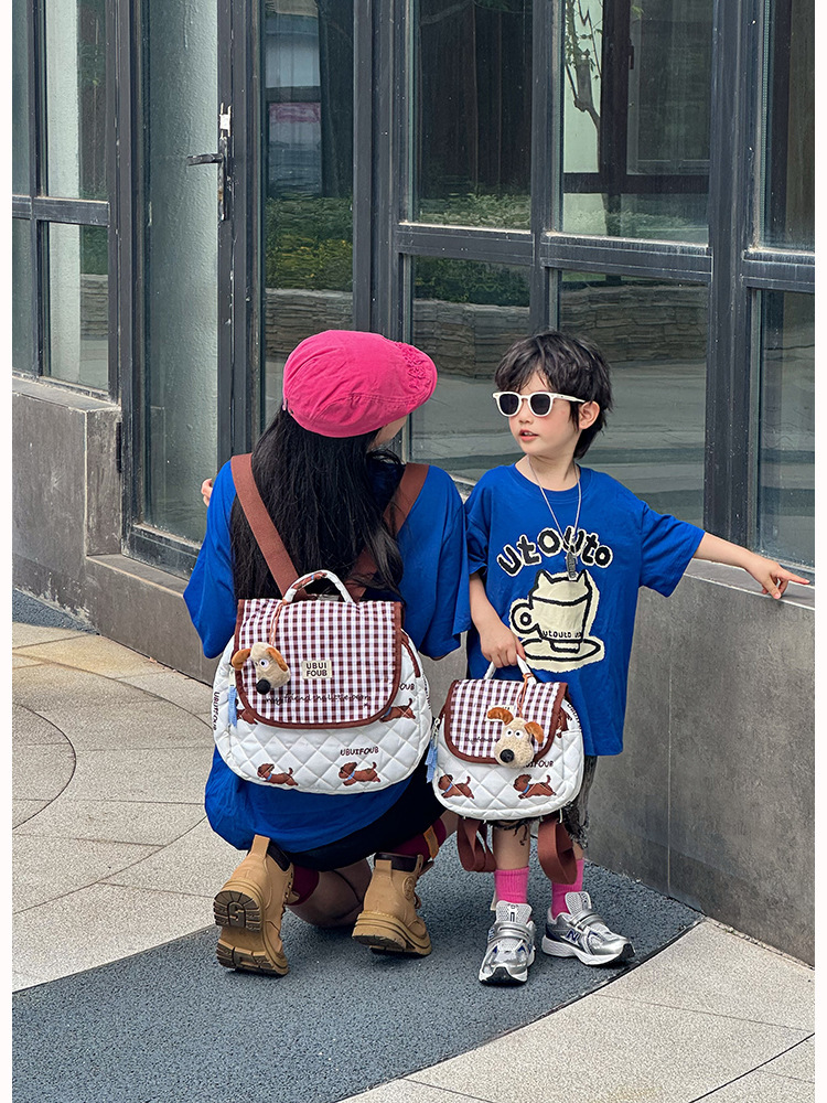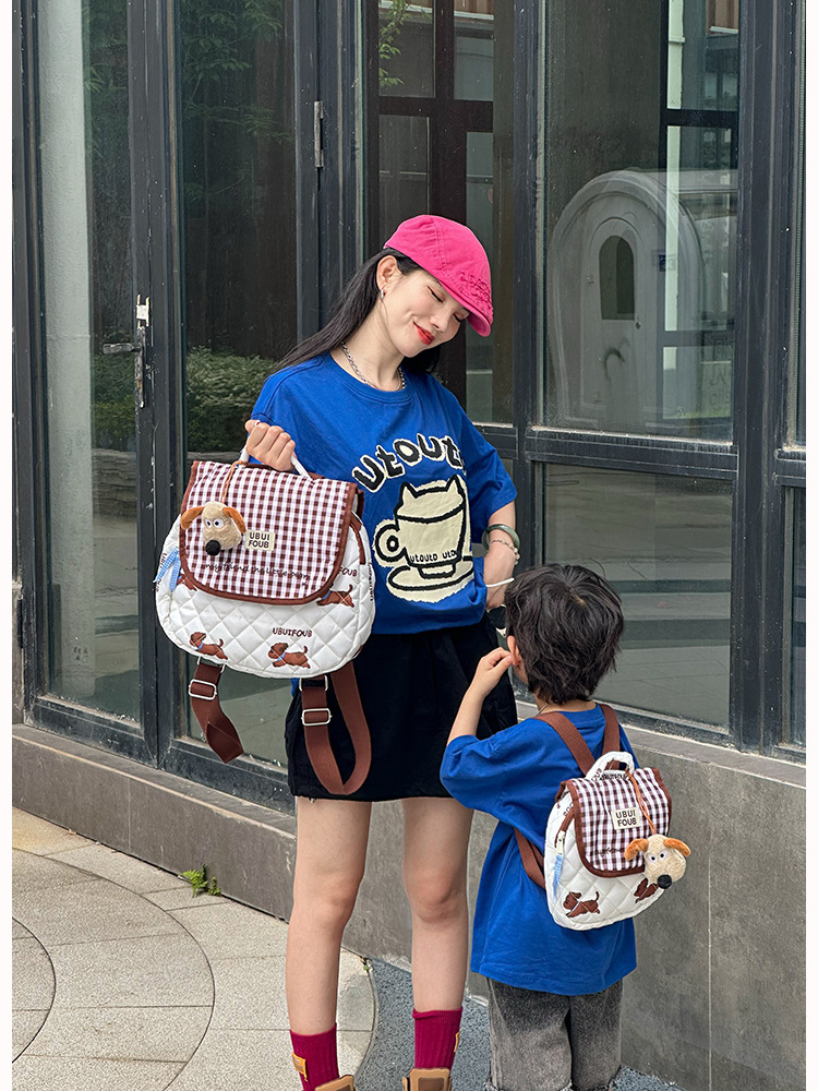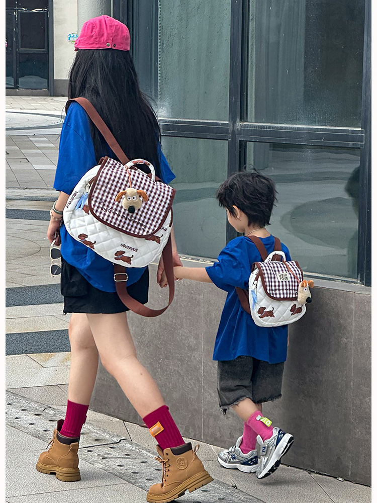어린이 가방 유행 한국어 버전 귀여운 강아지 격자 무늬 배낭 소년과 소녀 유치원 학교 가방 부모-자식 엄마 가방