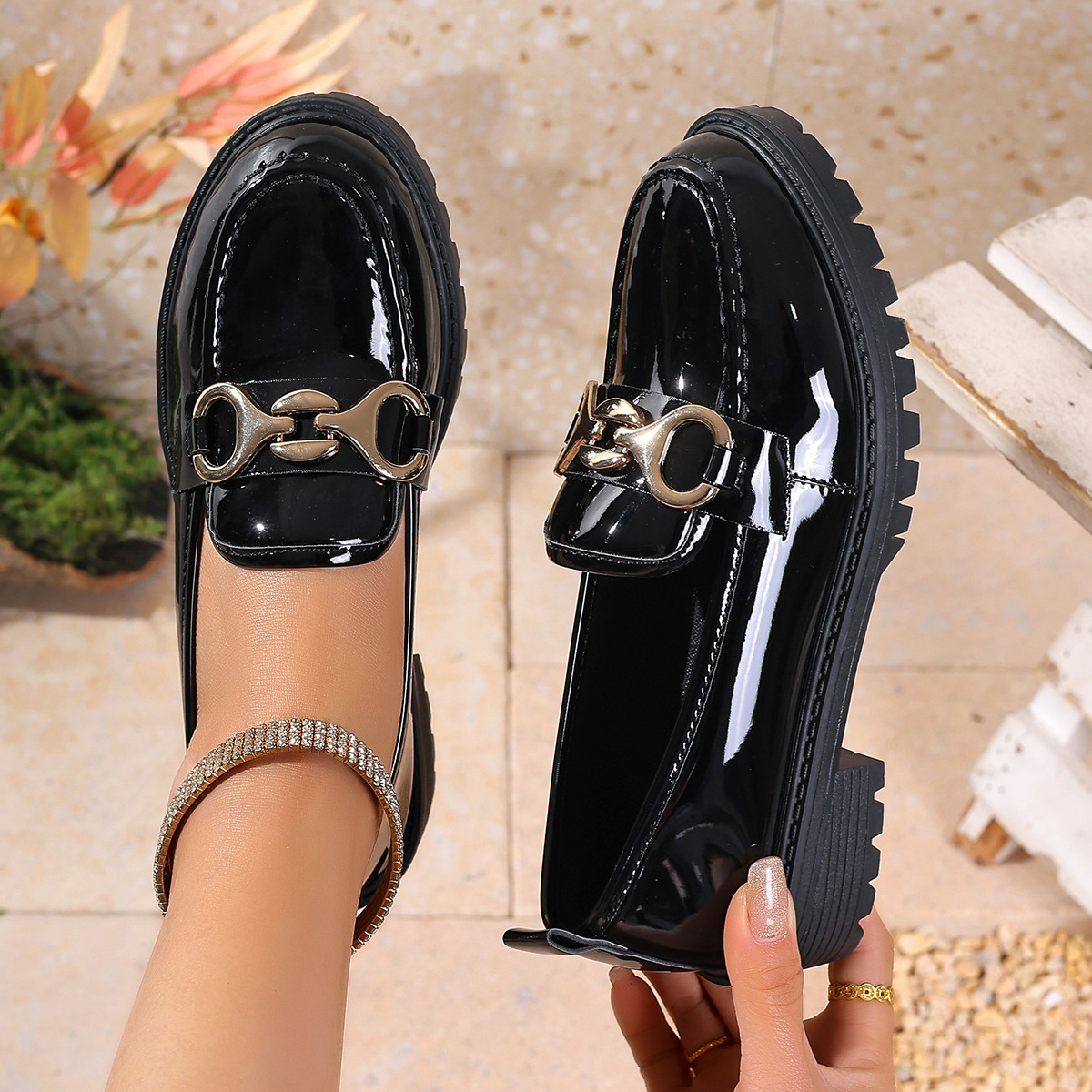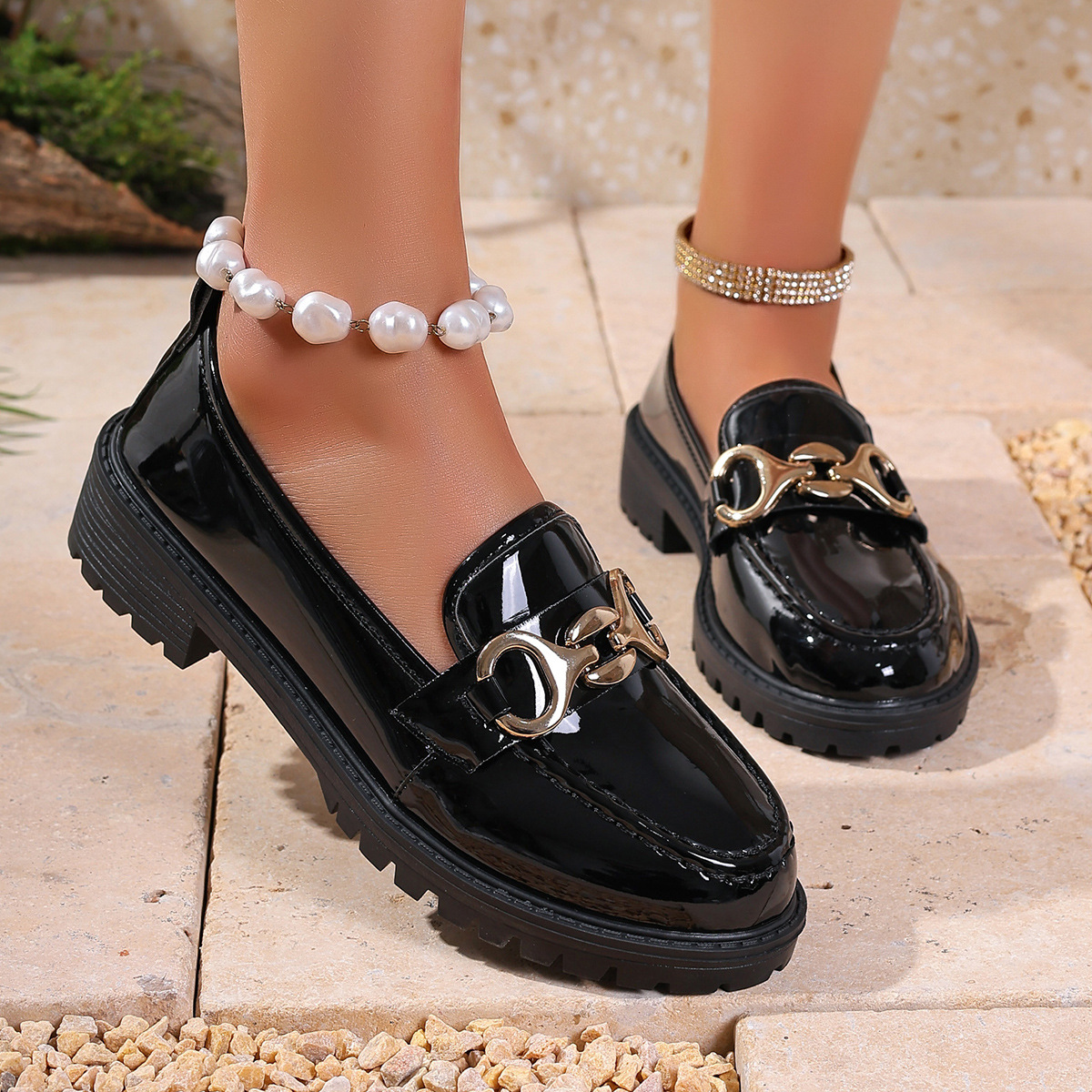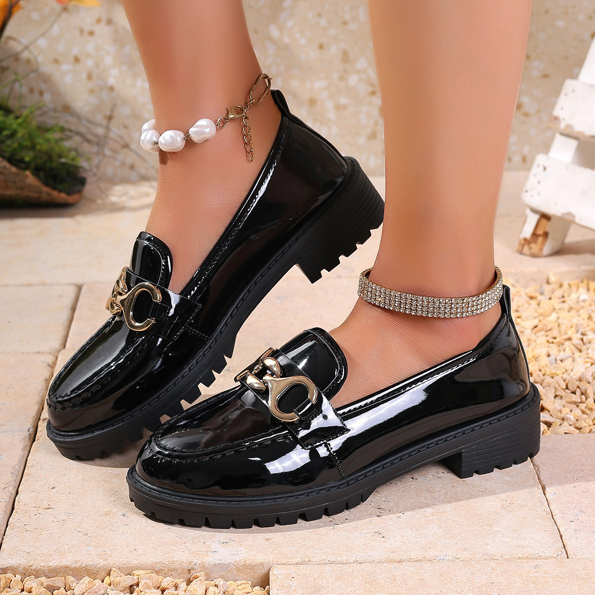 국경 간 대외 무역 대형 2025 새로운 영국 스타일 작은 가죽 신발 여성 라운드 발가락 여성 신발 두꺼운 밑창 신발 다목적 로퍼스토어 가기